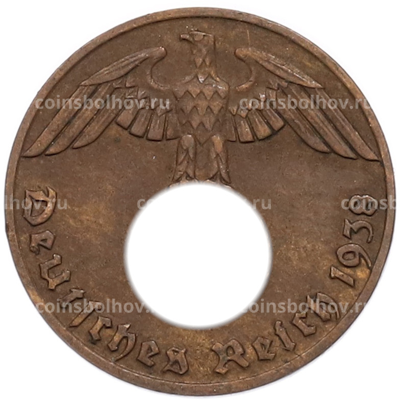 Монета 1 рейхспфенниг 1938 года J Германия