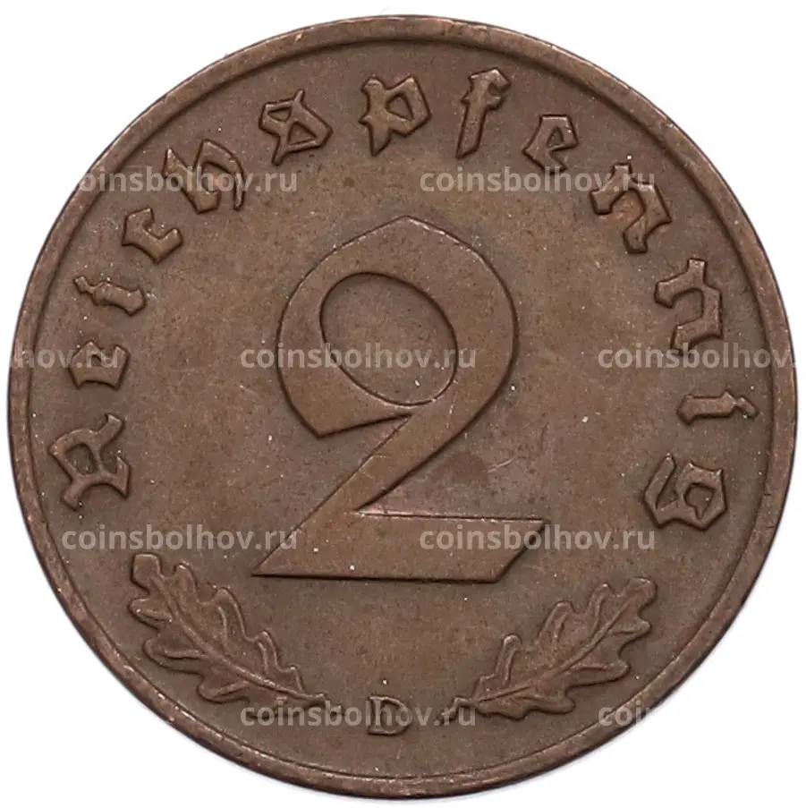 Монета 2 рейхспфеннига 1938 года D Германия