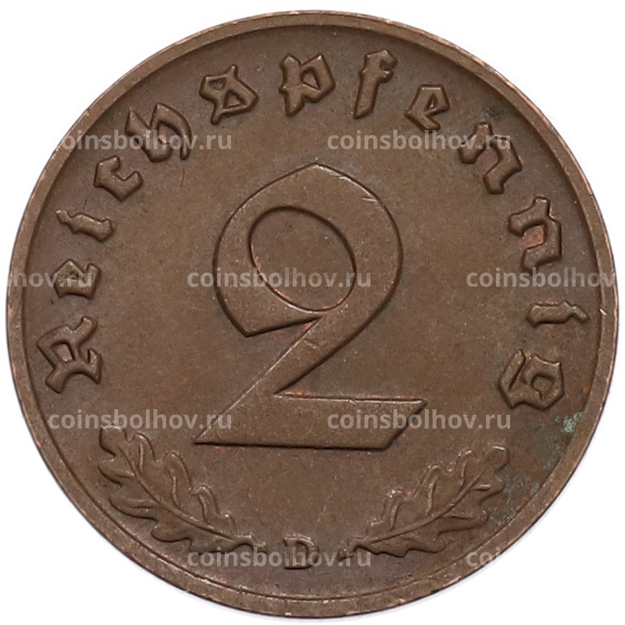 Монета 2 рейхспфеннига 1939 года D Германия