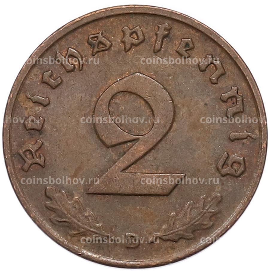 Монета 2 рейхспфеннига 1939 года D Германия