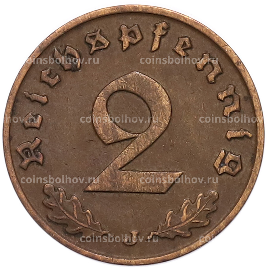 Монета 2 рейхспфеннига 1938 года J Германия