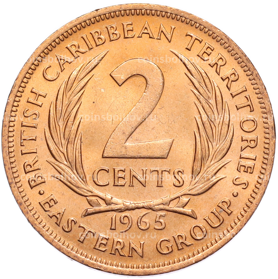 Монета 2 цента 1965 года Британские Восточные Карибы