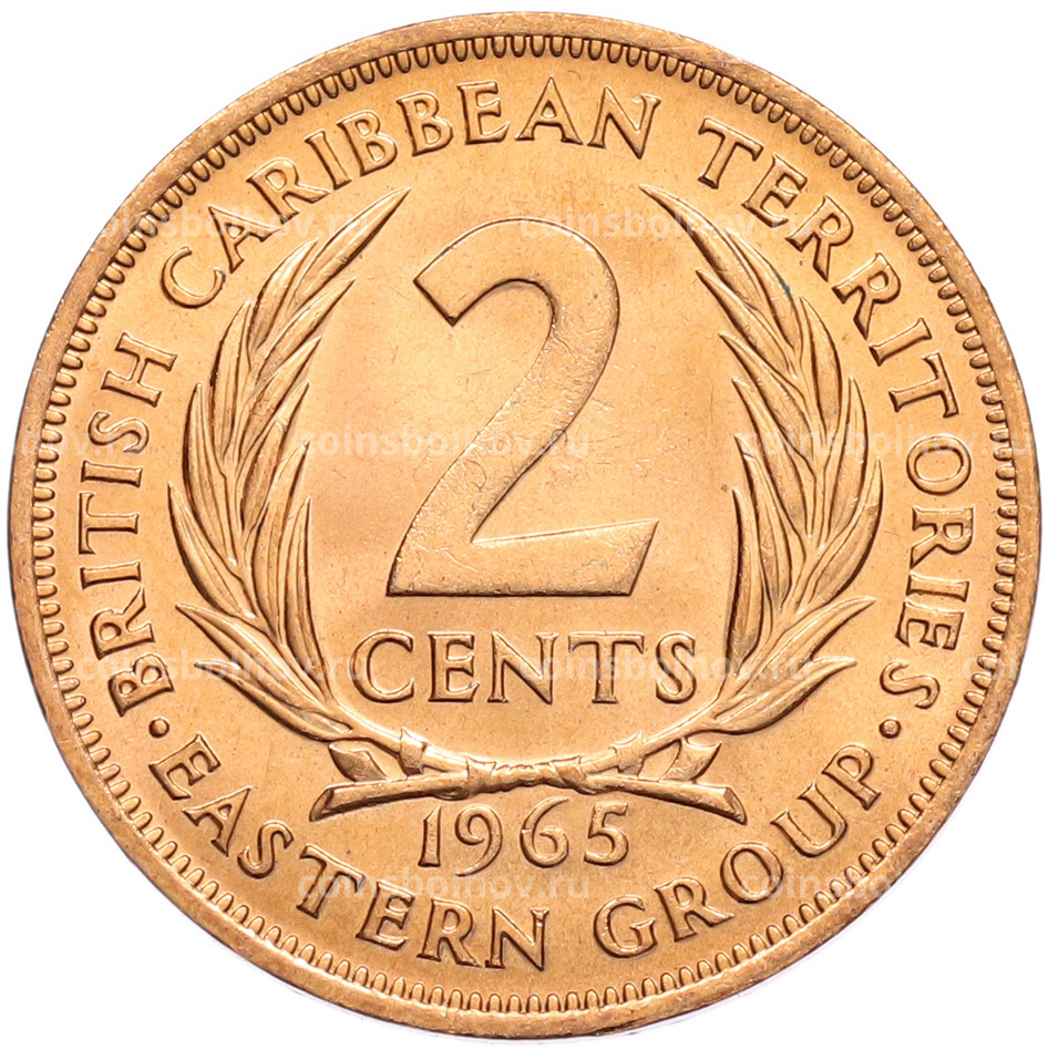 Монета 2 цента 1965 года Британские Восточные Карибы