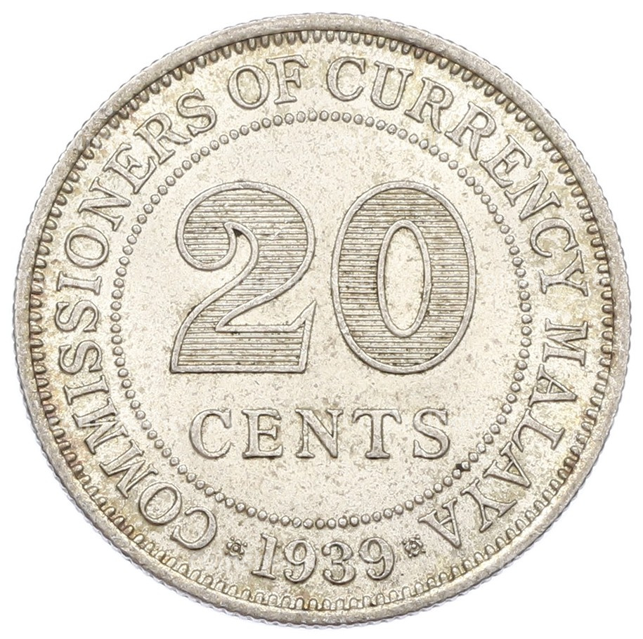 Монета 20 центов 1939 года Малайя