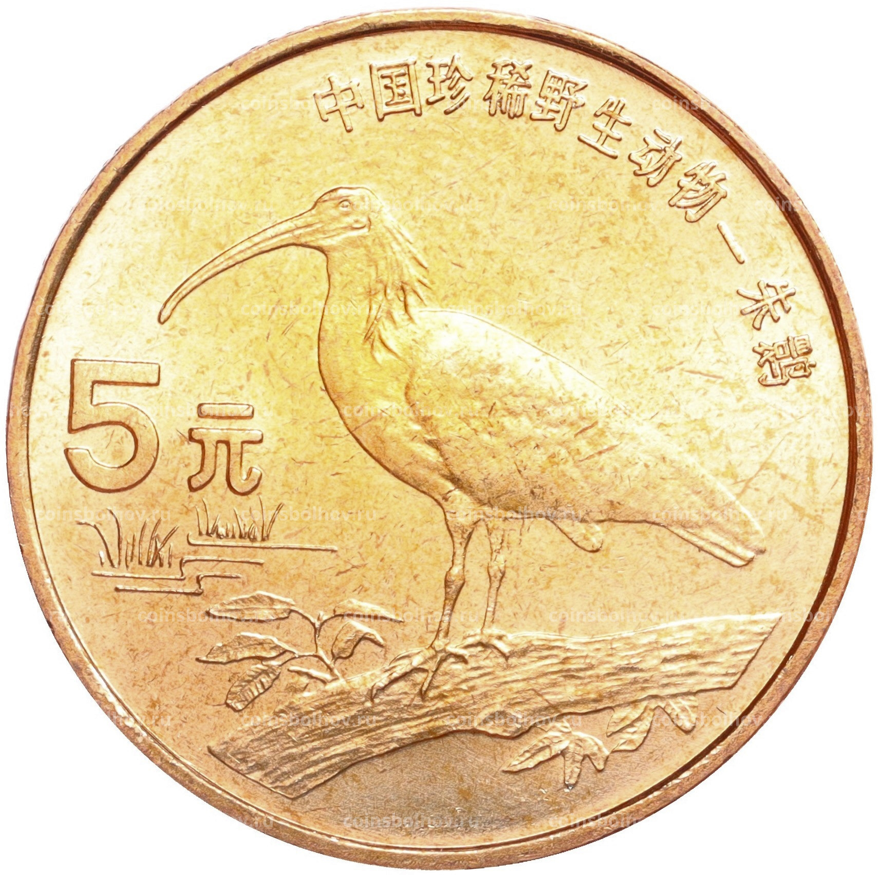 Монета 5 юаней 1997 года Китай «Красная книга — Красноногий ибис»