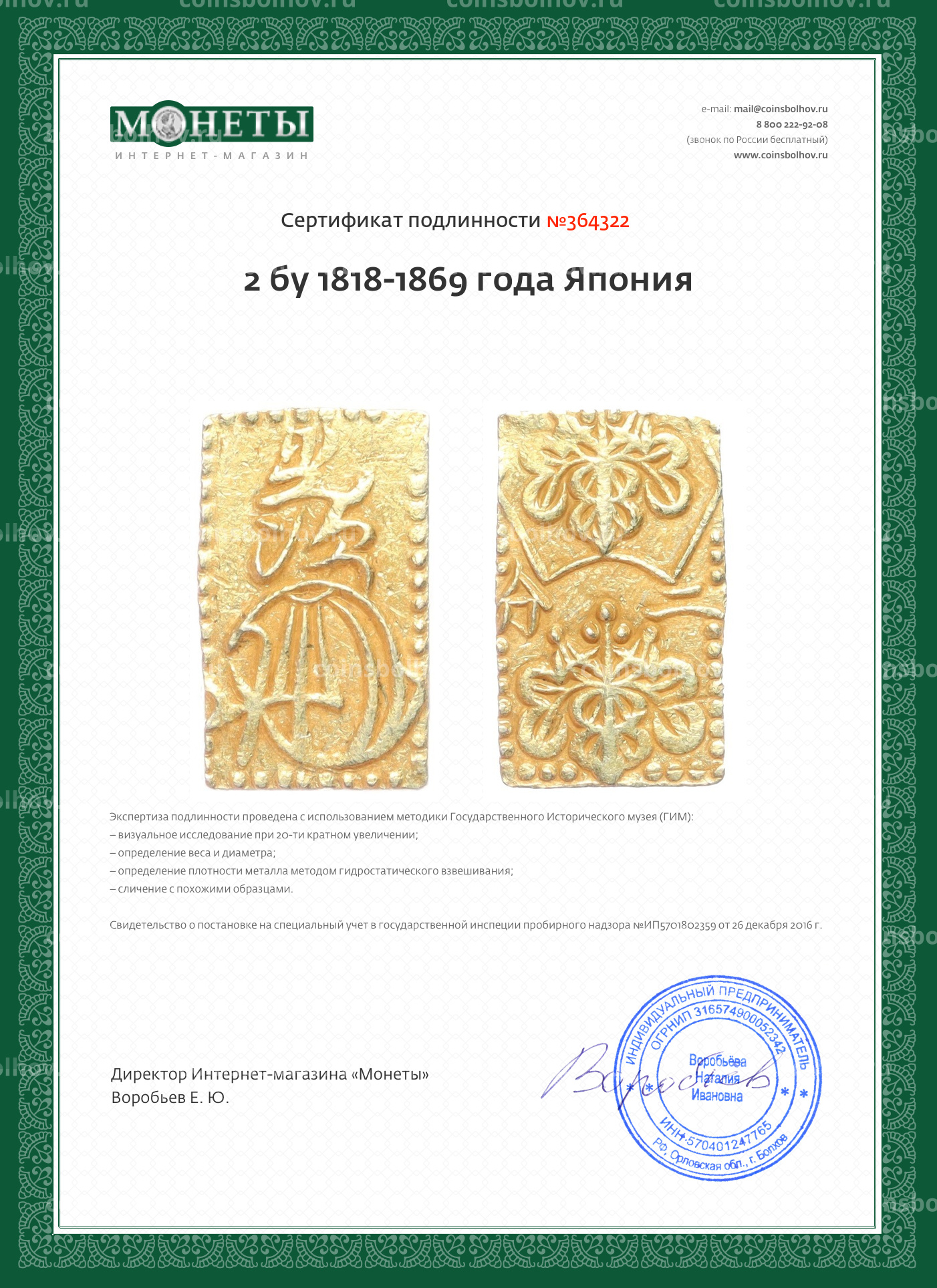 Монета 2 бу 1818-1869 года Япония