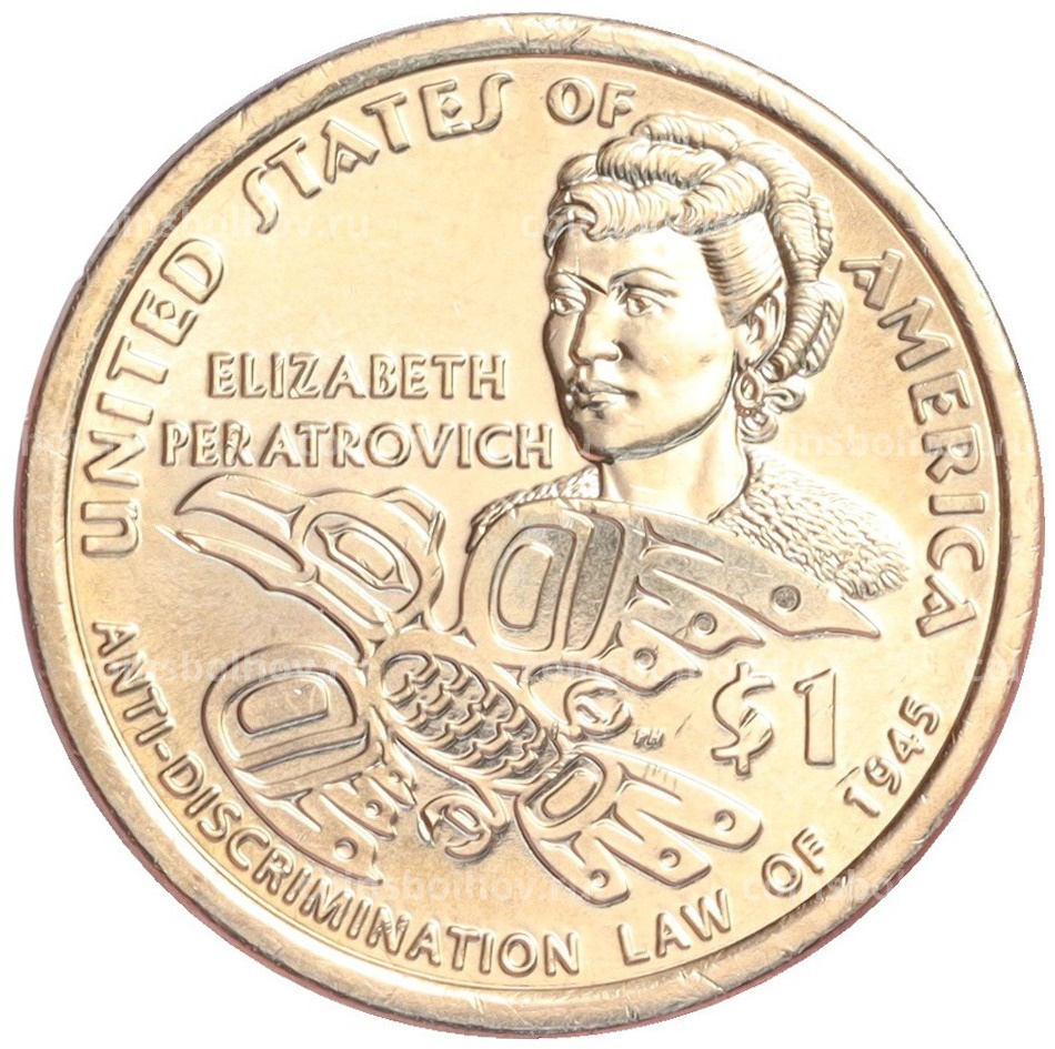 Монета 1 доллар 2020 года D США «Коренные американцы (Сакагавея) — Элизабет Ператрович и Закон о борьбе с дискриминацией 1945 года»
