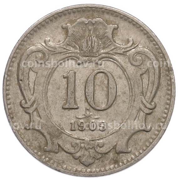 Монета 10 геллеров 1909 года Австрия