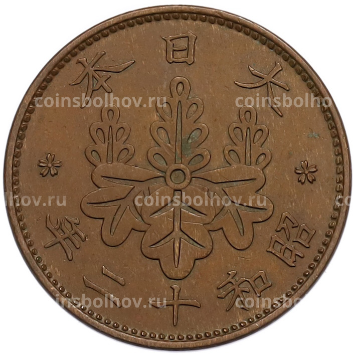 Монета 1 сен 1937 года Япония