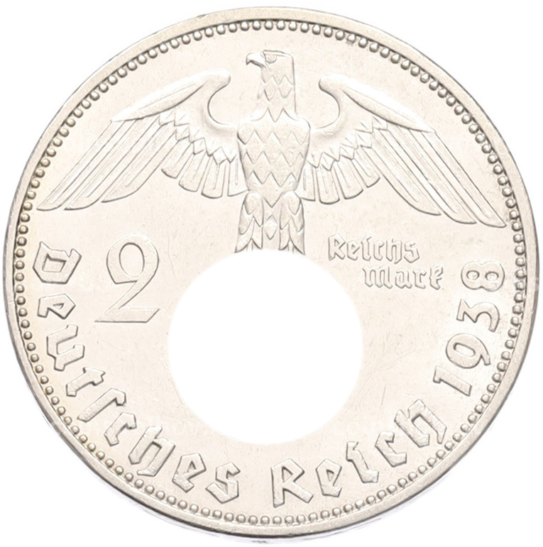 Монета 2 рейхсмарки 1938 года E Германия