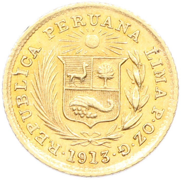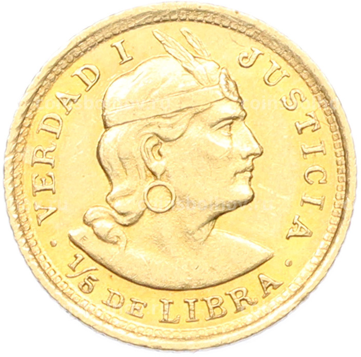 Монета 1/5 либры 1913 года Перу