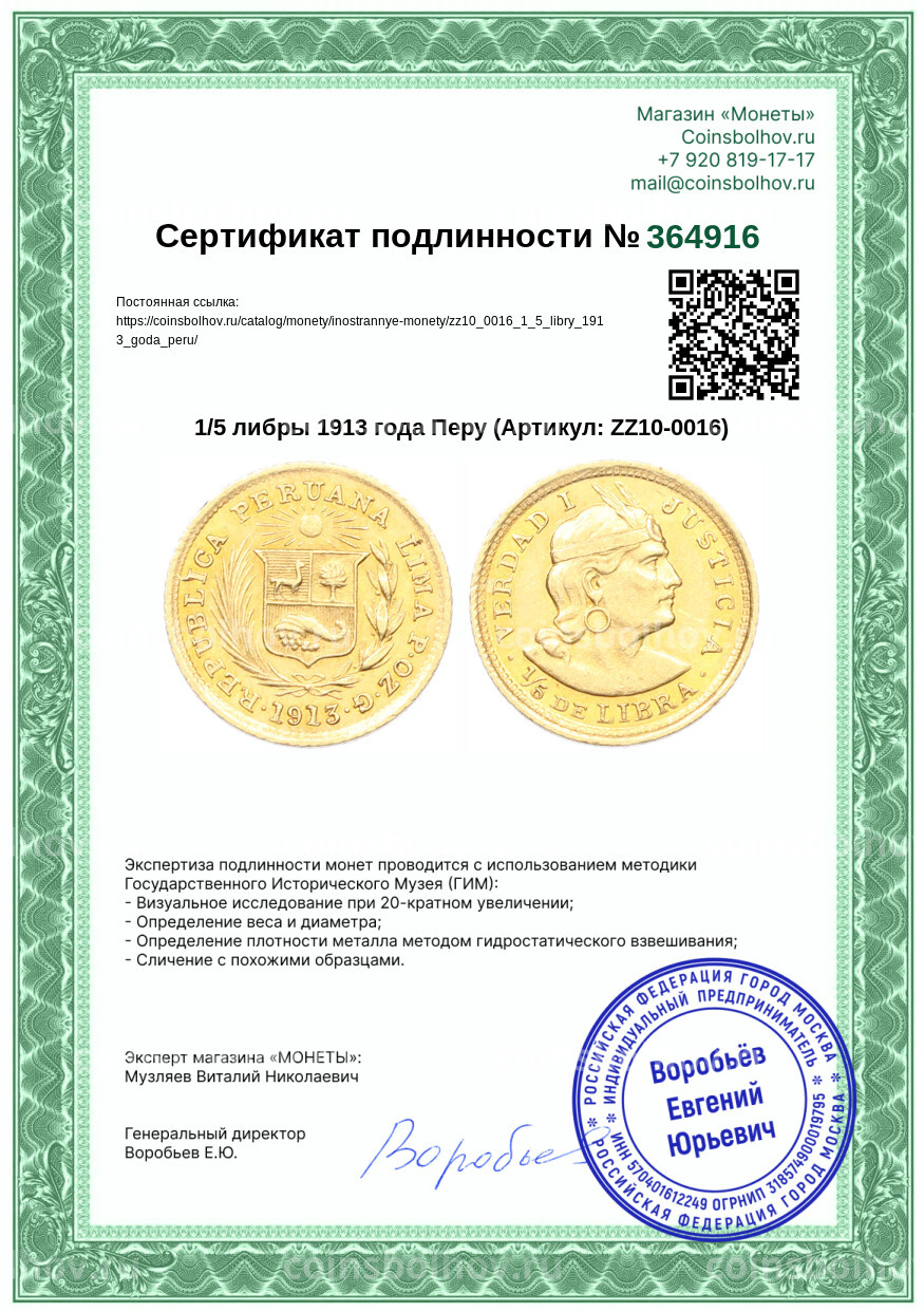 - Номинал 1/5 либры
