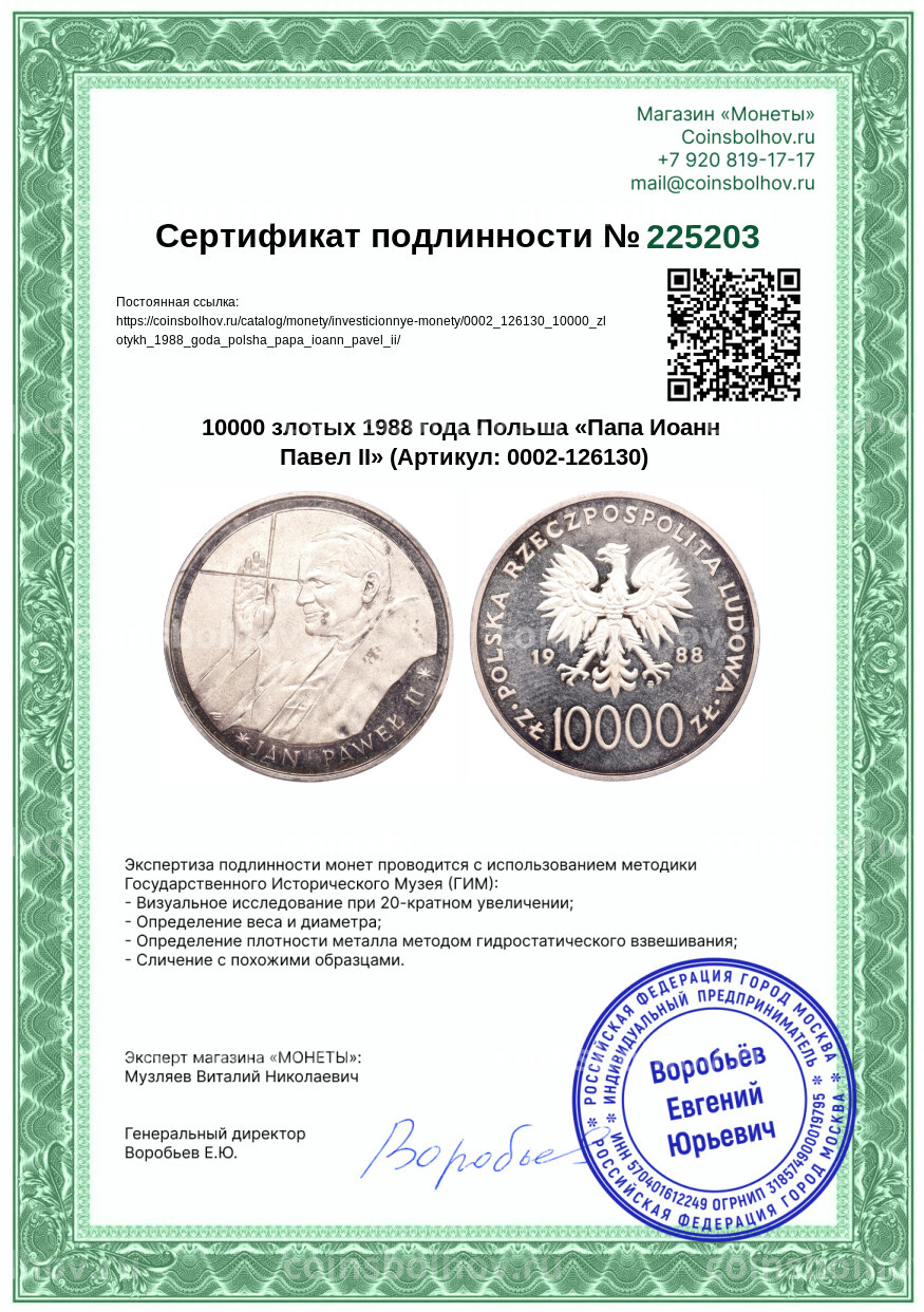 Монета 10000 злотых 1988 года Польша «Папа Иоанн Павел II»