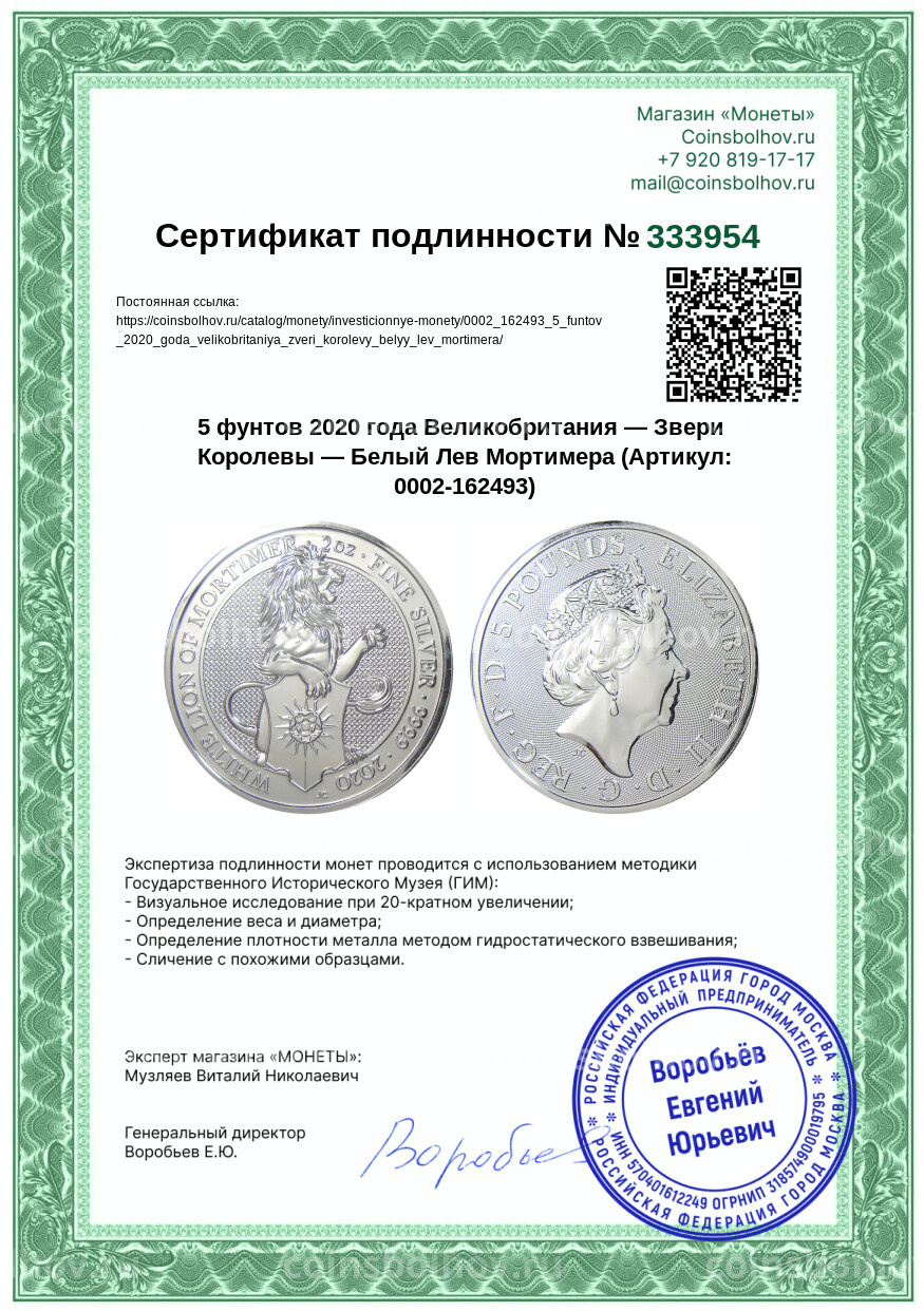 Монета 5 фунтов 2020 года Великобритания — Звери Королевы — Белый Лев Мортимера