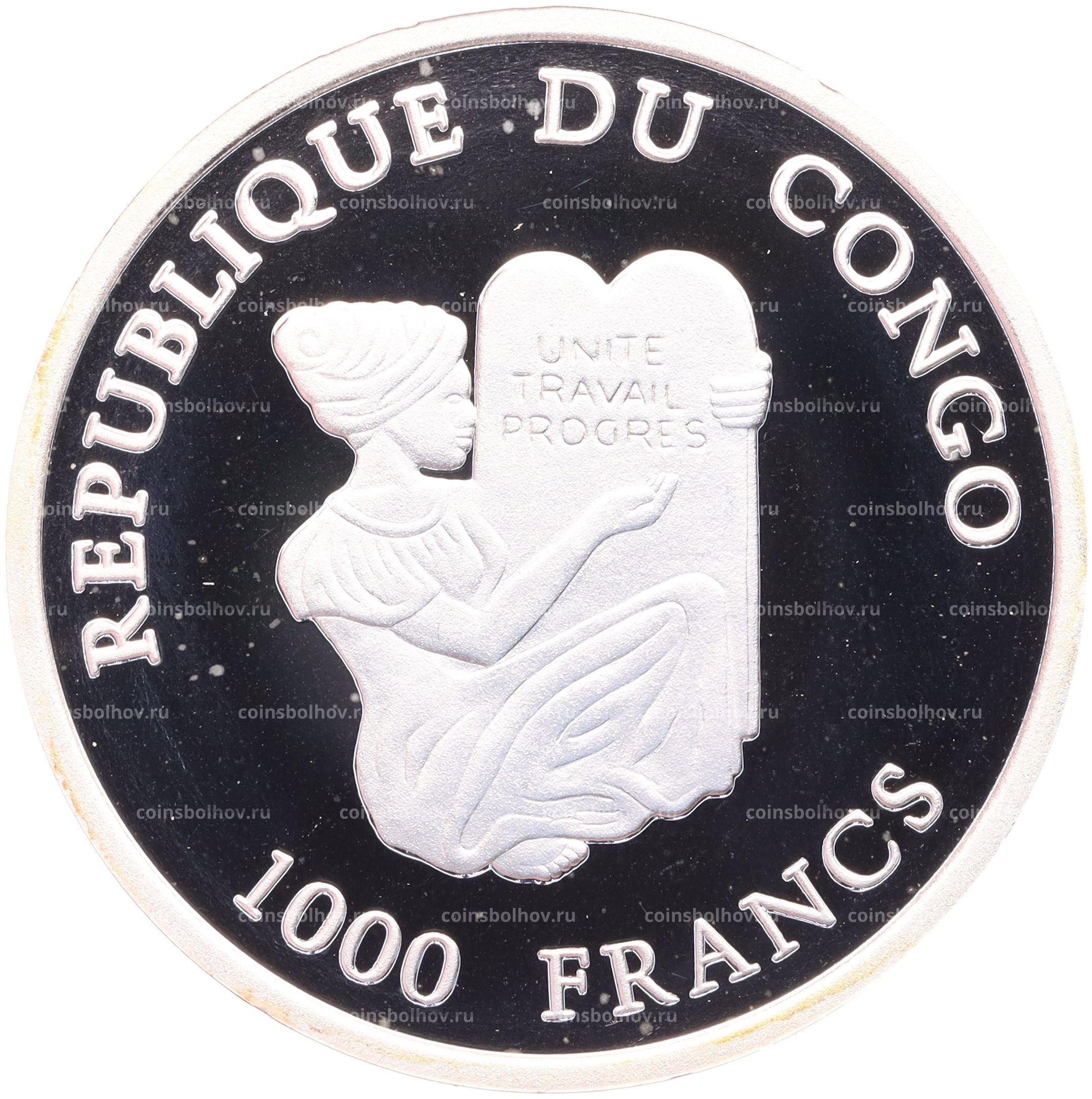 Монета 1000 франков 2002 года Конго «Последний выпуск Французского франка»