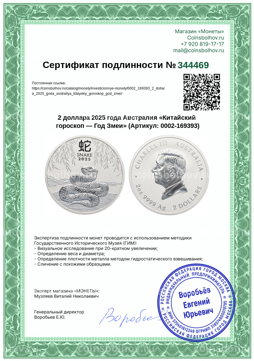 Монета 2 доллара 2025 года Австралия «Китайский гороскоп — Год Змеи»