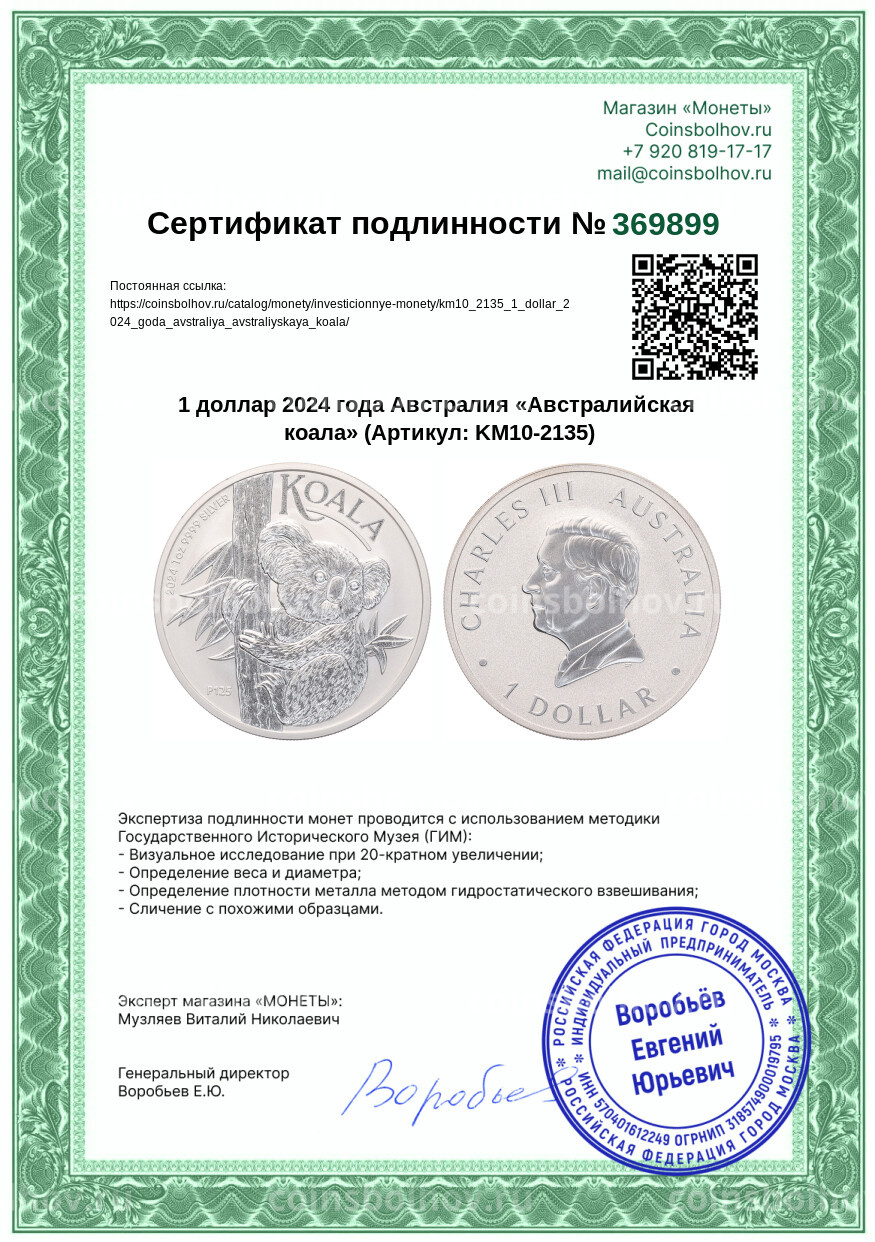 Монета 1 доллар 2024 года Австралия «Австралийская коала»