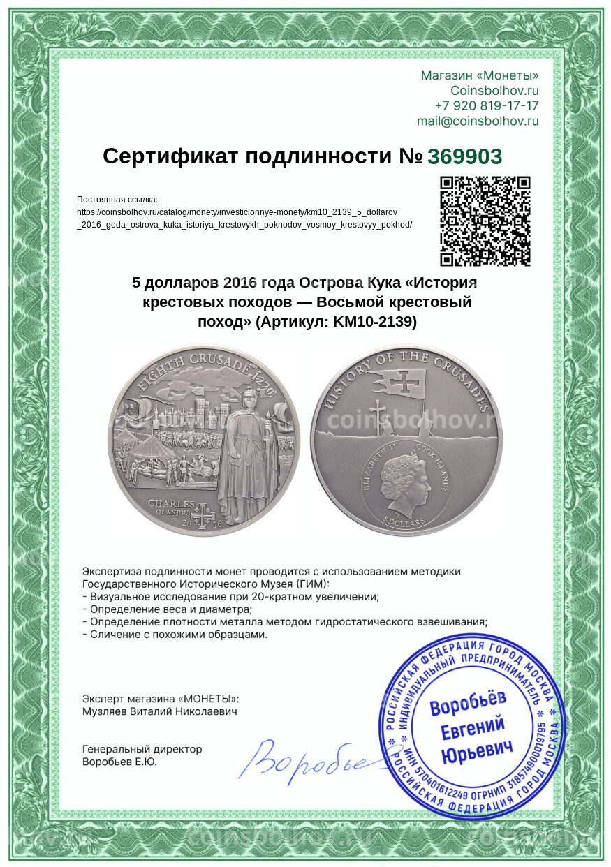 Монета 5 долларов 2016 года Острова Кука «История крестовых походов — Восьмой крестовый поход»