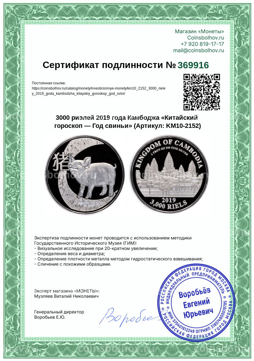 Монета 3000 риэлей 2019 года Камбоджа «Китайский гороскоп — Год свиньи»