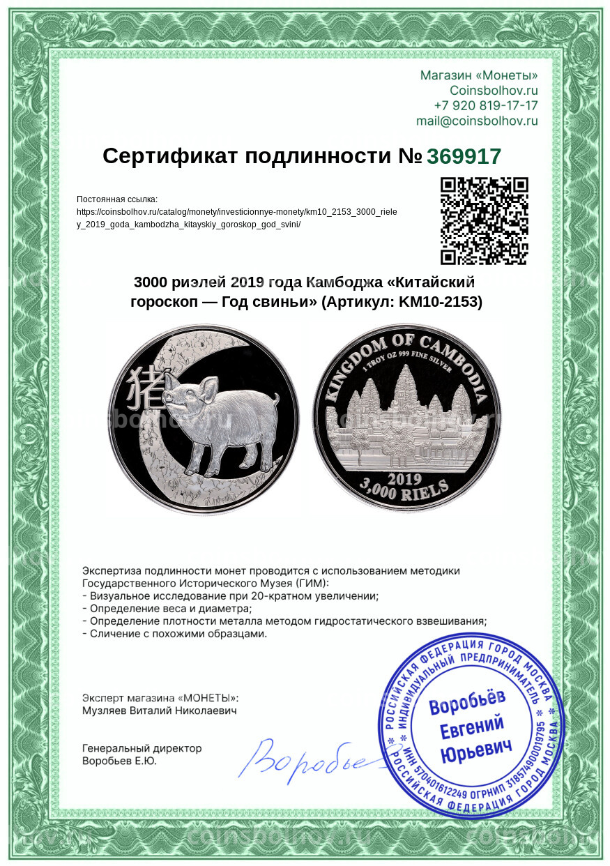 Монета 3000 риэлей 2019 года Камбоджа «Китайский гороскоп — Год свиньи»