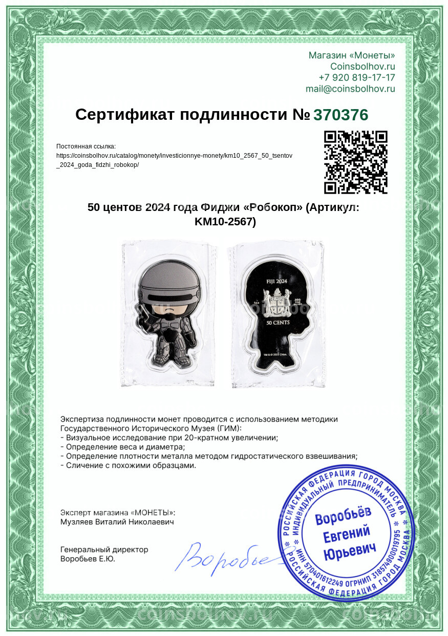 Монета 50 центов 2024 года Фиджи «Робокоп»