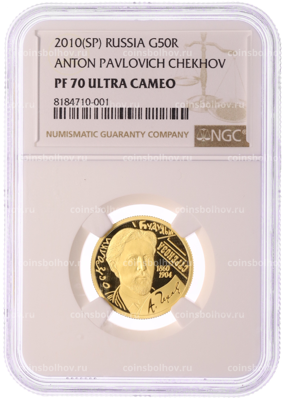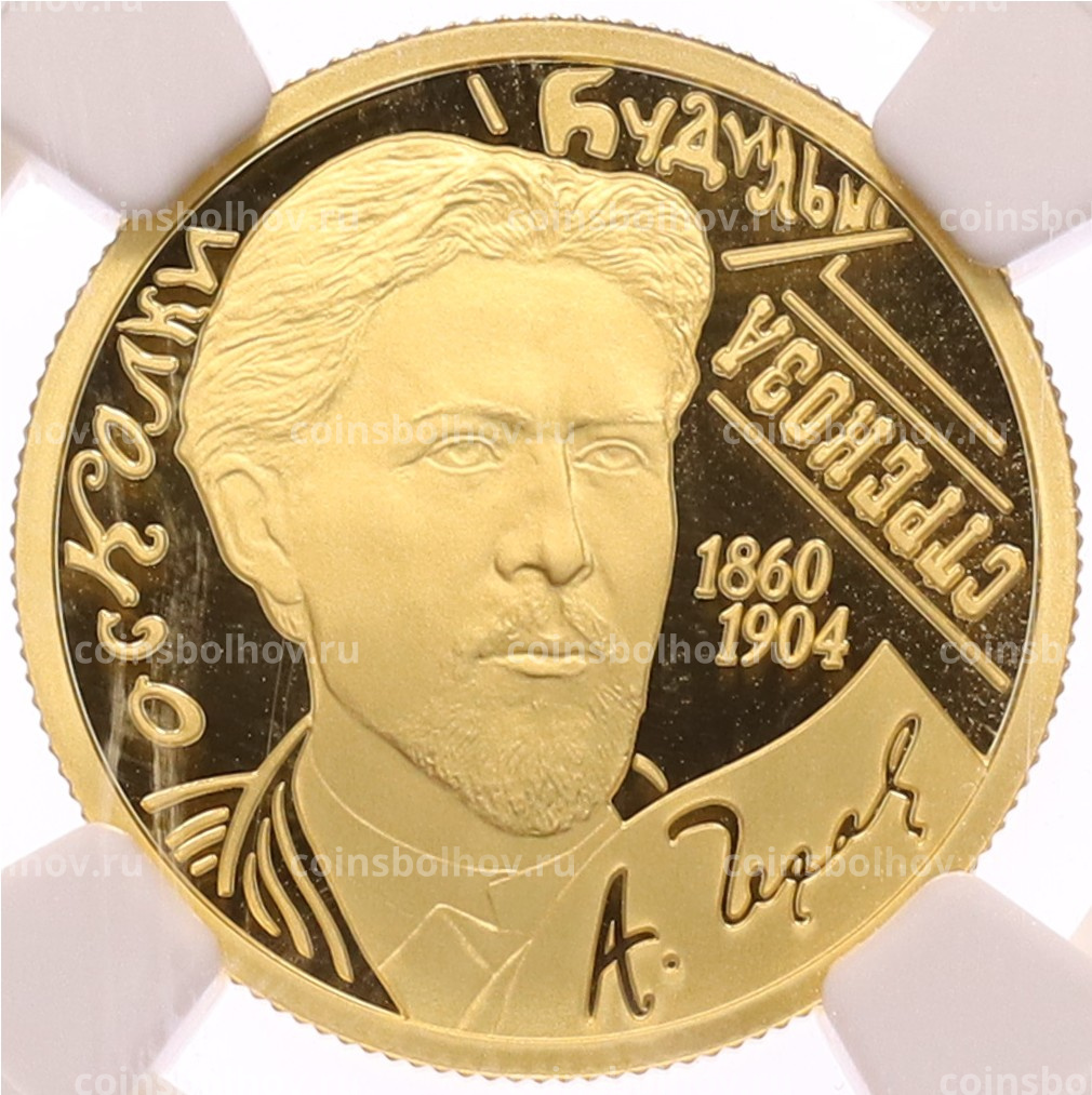Монета 50 рублей 2010 года СПМД «150 лет со дня рождения Антона Павловича Чехова» в слабе NGC (PF70 ULTRA CAMEO)