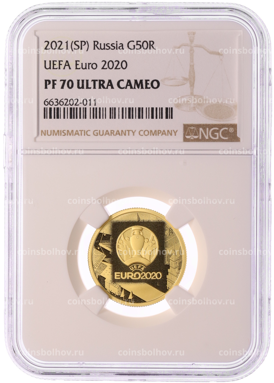 Монета 50 рублей 2021 года СПМД « Чемпионат Европы по футболу УЕФА-2020» в слабе NGC (PF70 ULTRA CAMEO)