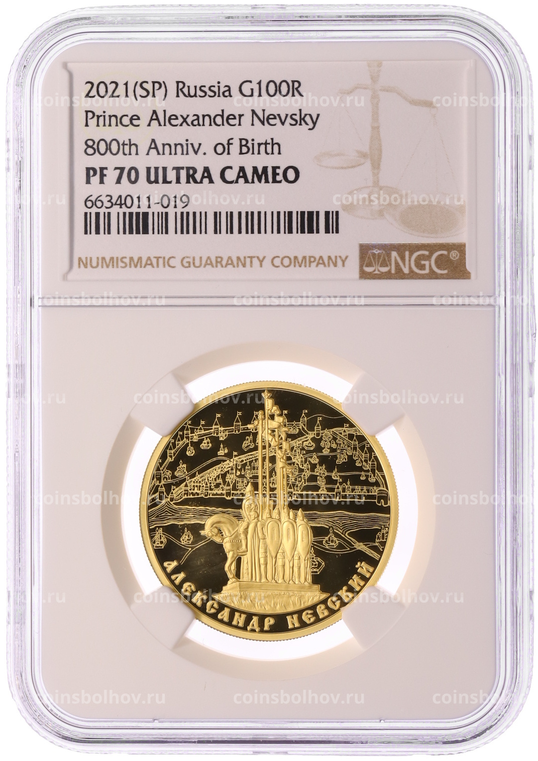 Монета 100 рублей 2021 года СПМД «800 лет со дня рождения князя Александра Невского» в слабе NGC (PF70 ULTRA CAMEO)