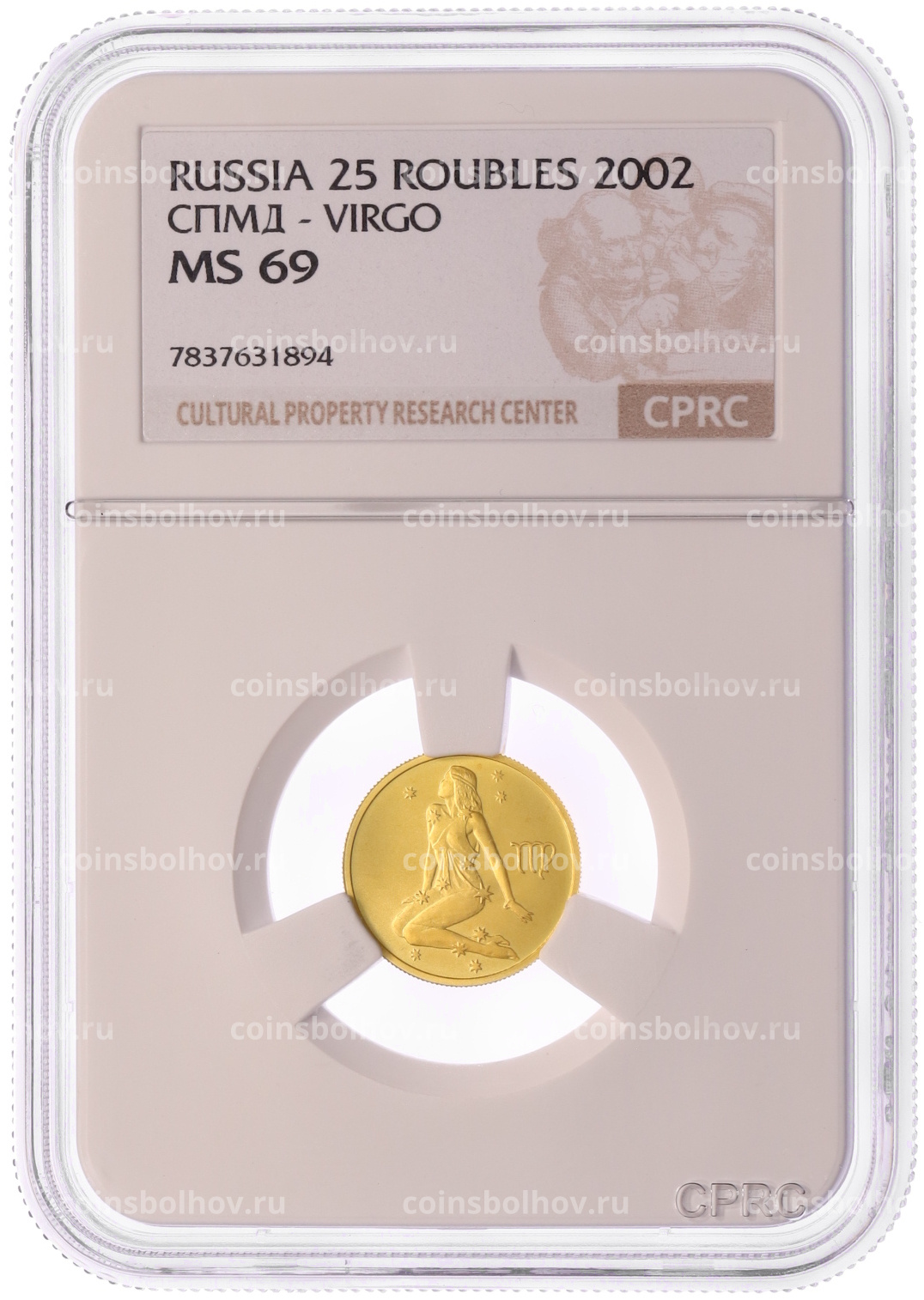 Монета 25 рублей 2002 года СПМД «Знаки зодиака — Дева» в слабе CPRC (MS69)