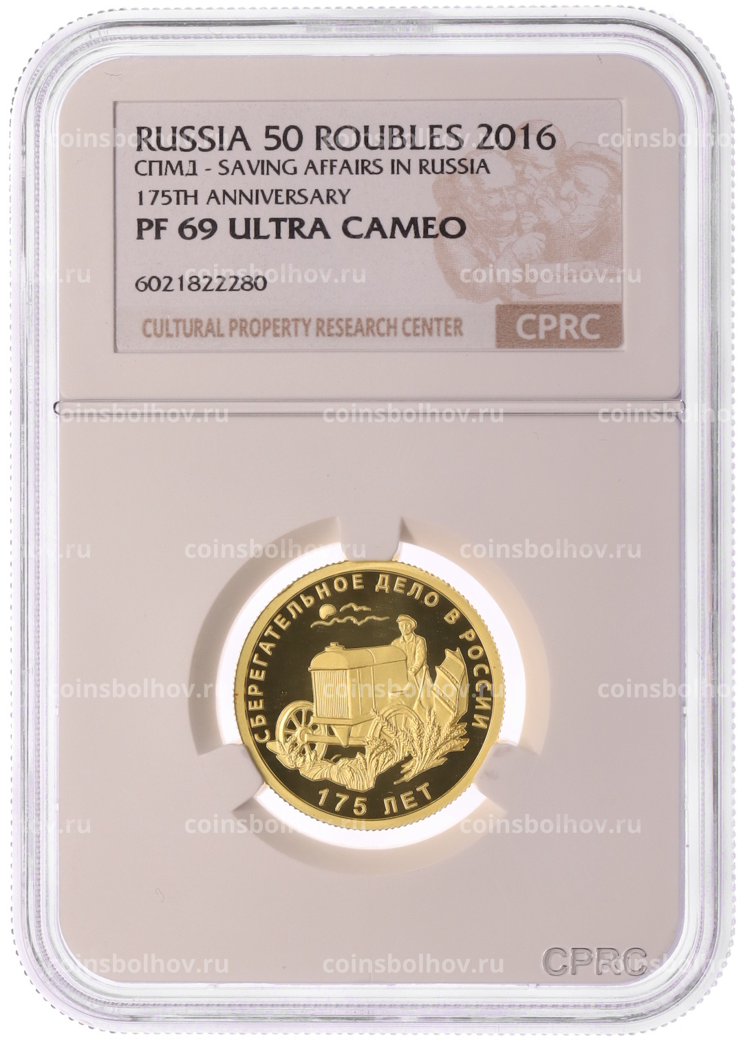 Монета 50 рублей 2016 года СПМД «175 лет Сберегательному делу в России» в слабе CPRC (PF69 ULTRA CAMEO)