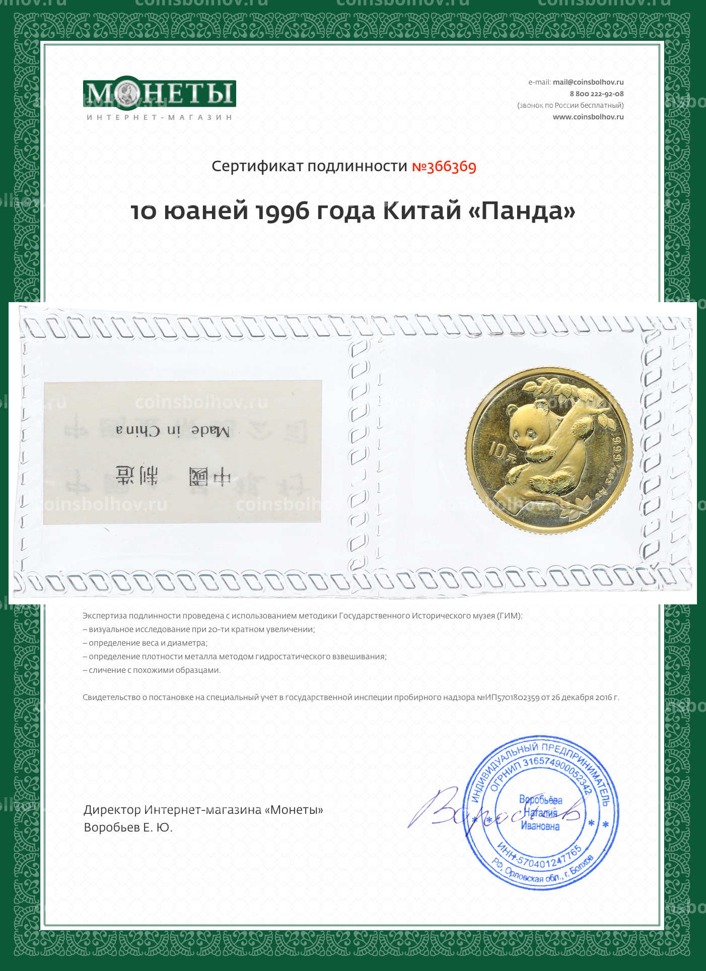 Монета 10 юаней 1996 года Китай «Панда»