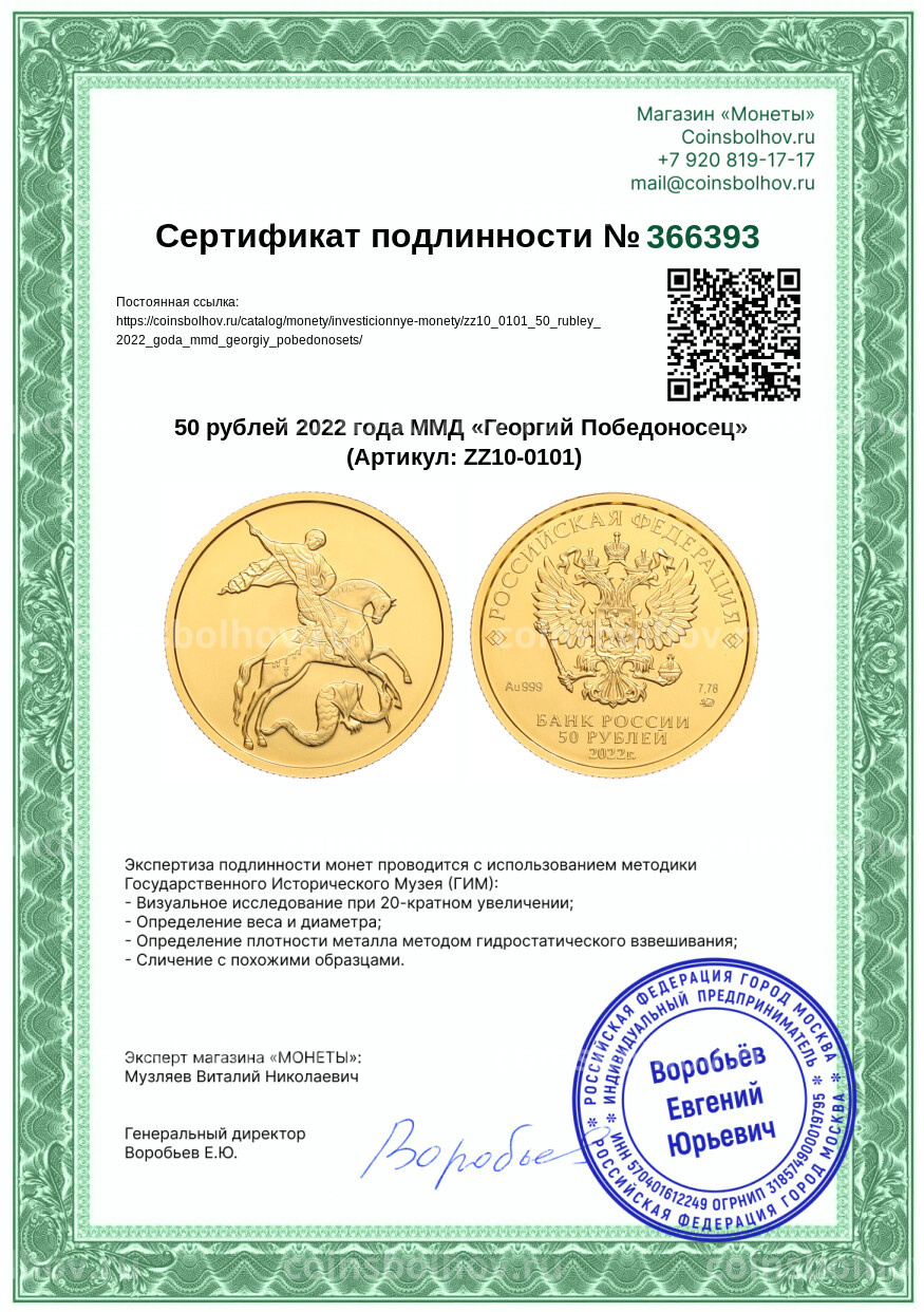 Монета 50 рублей 2022 года ММД «Георгий Победоносец»