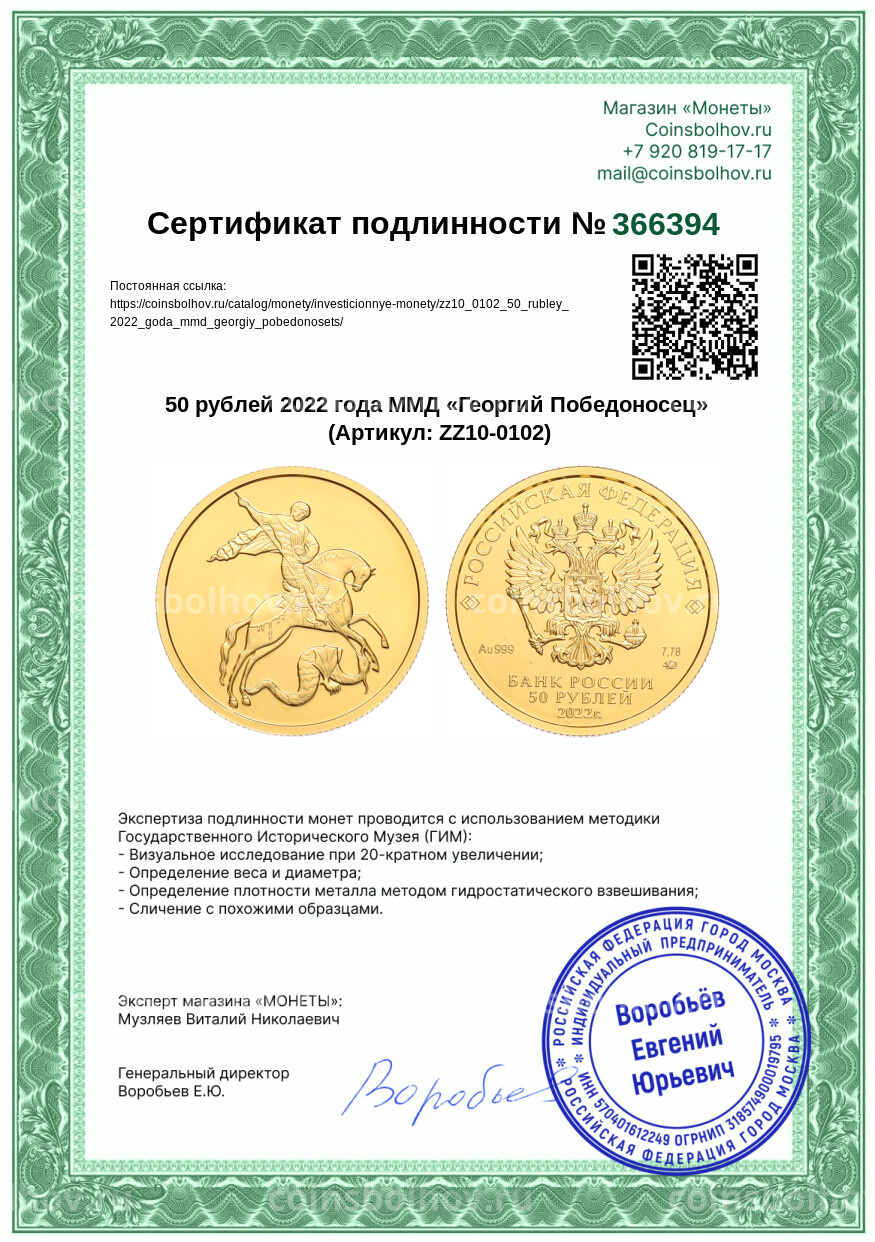 Монета 50 рублей 2022 года ММД «Георгий Победоносец»