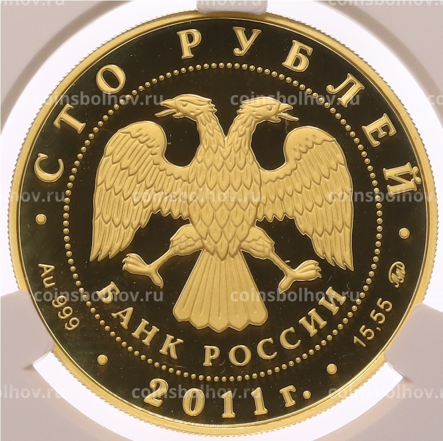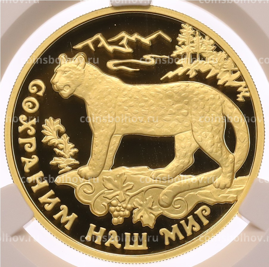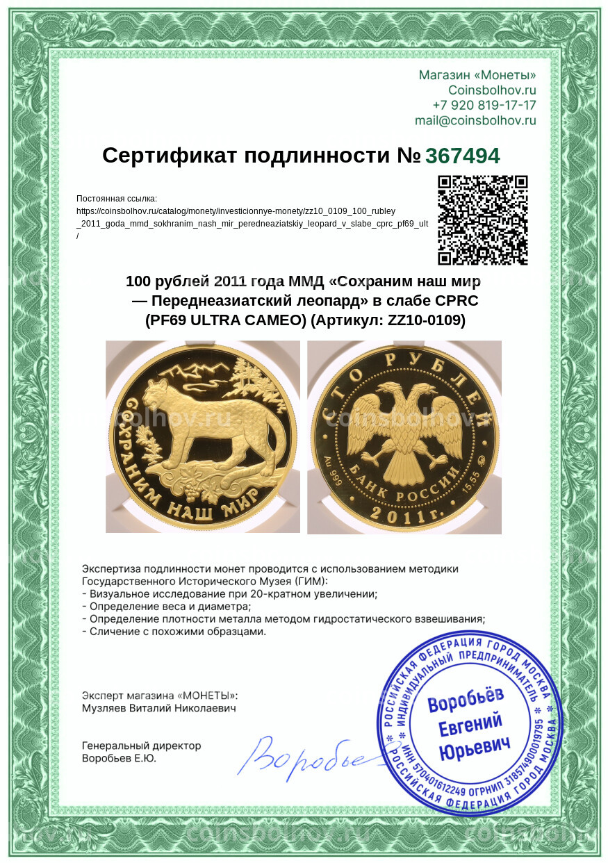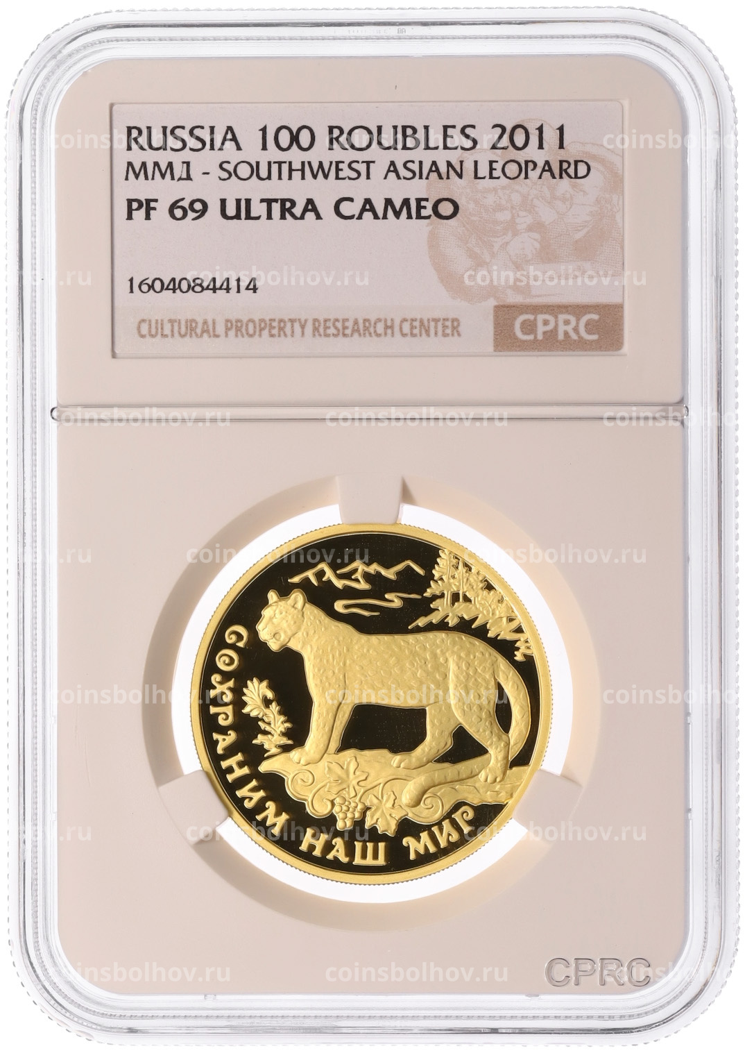 Монета 100 рублей 2011 года ММД «Сохраним наш мир — Переднеазиатский леопард» в слабе CPRC (PF69 ULTRA CAMEO)