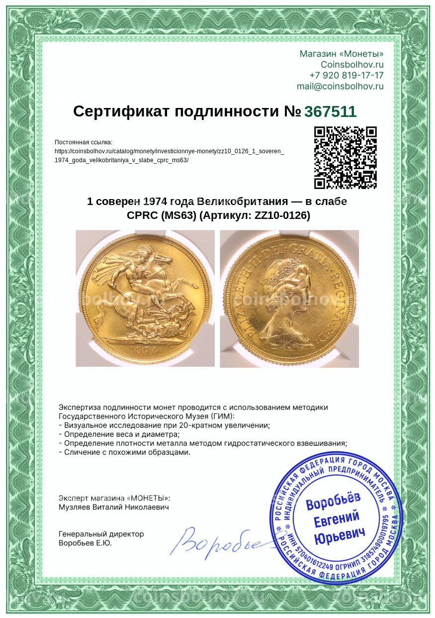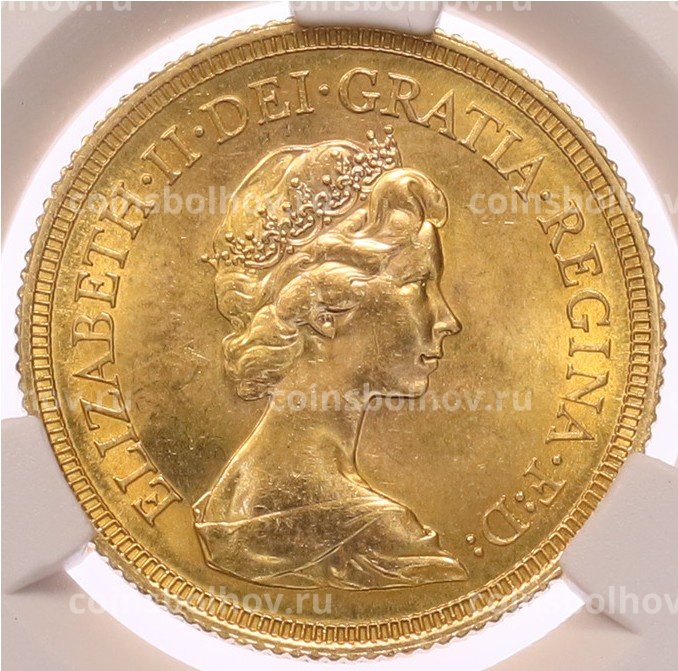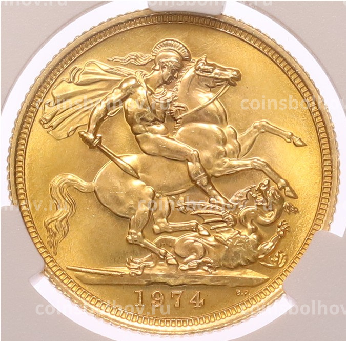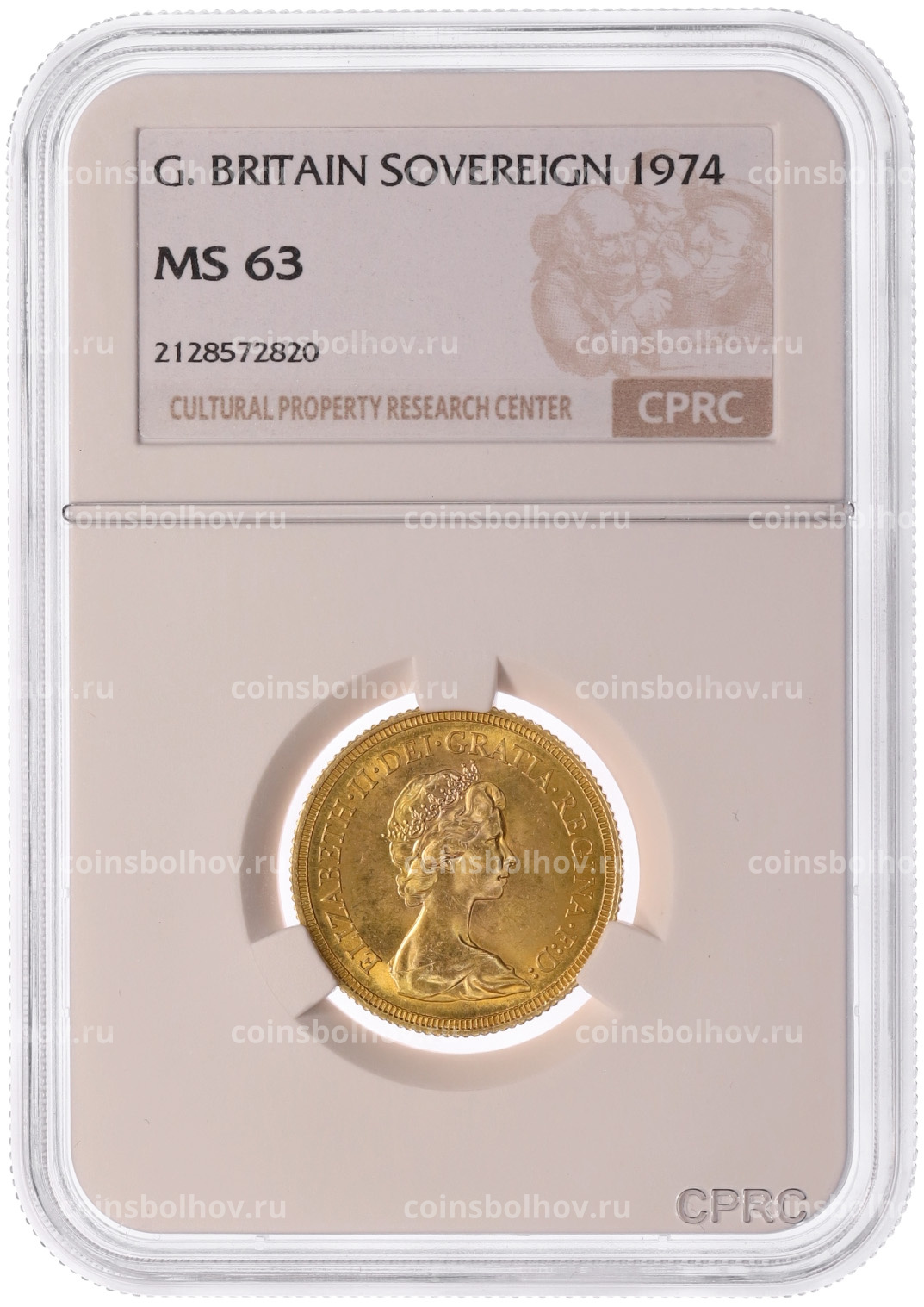 Монета 1 соверен 1974 года Великобритания — в слабе CPRC (MS63)