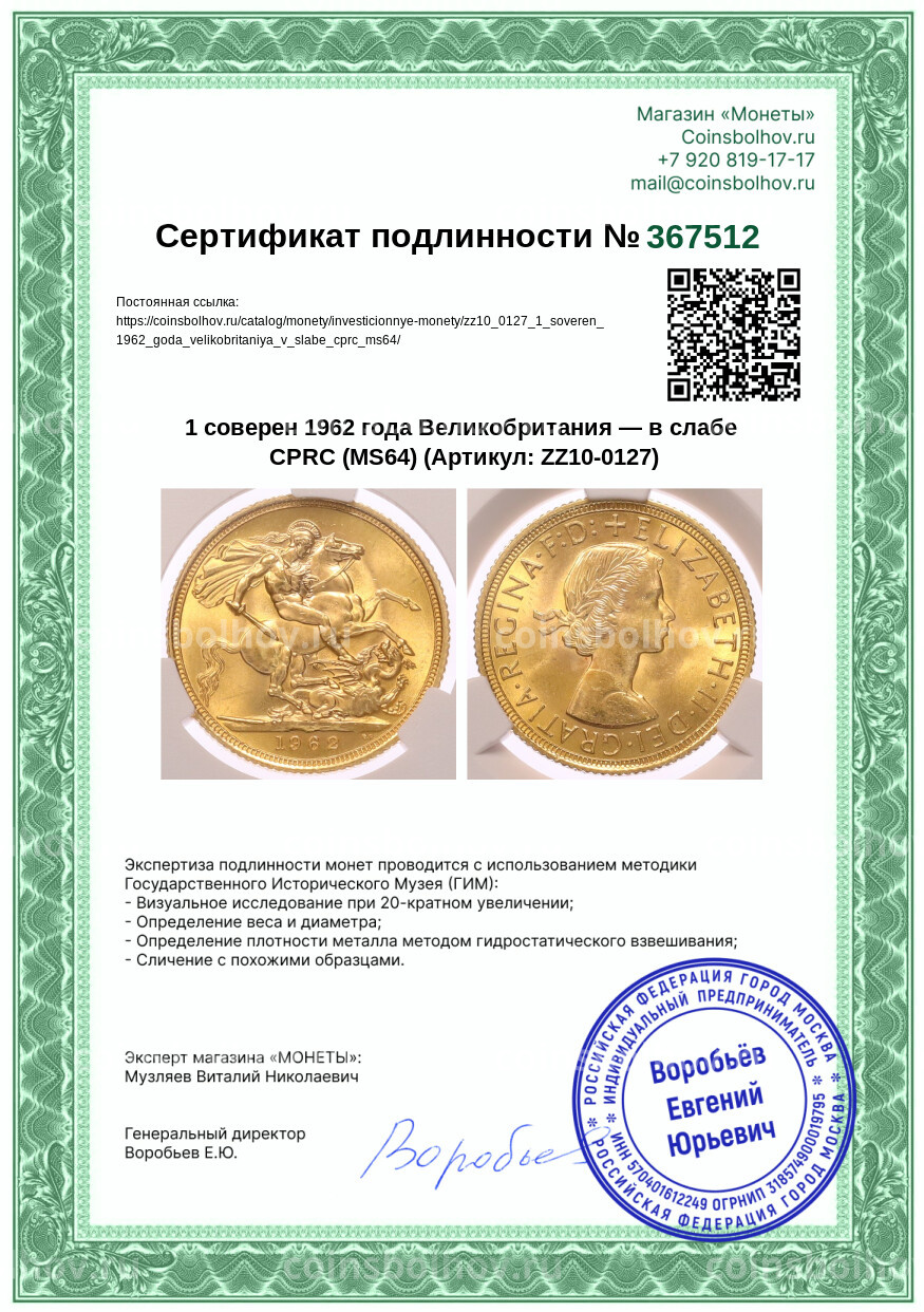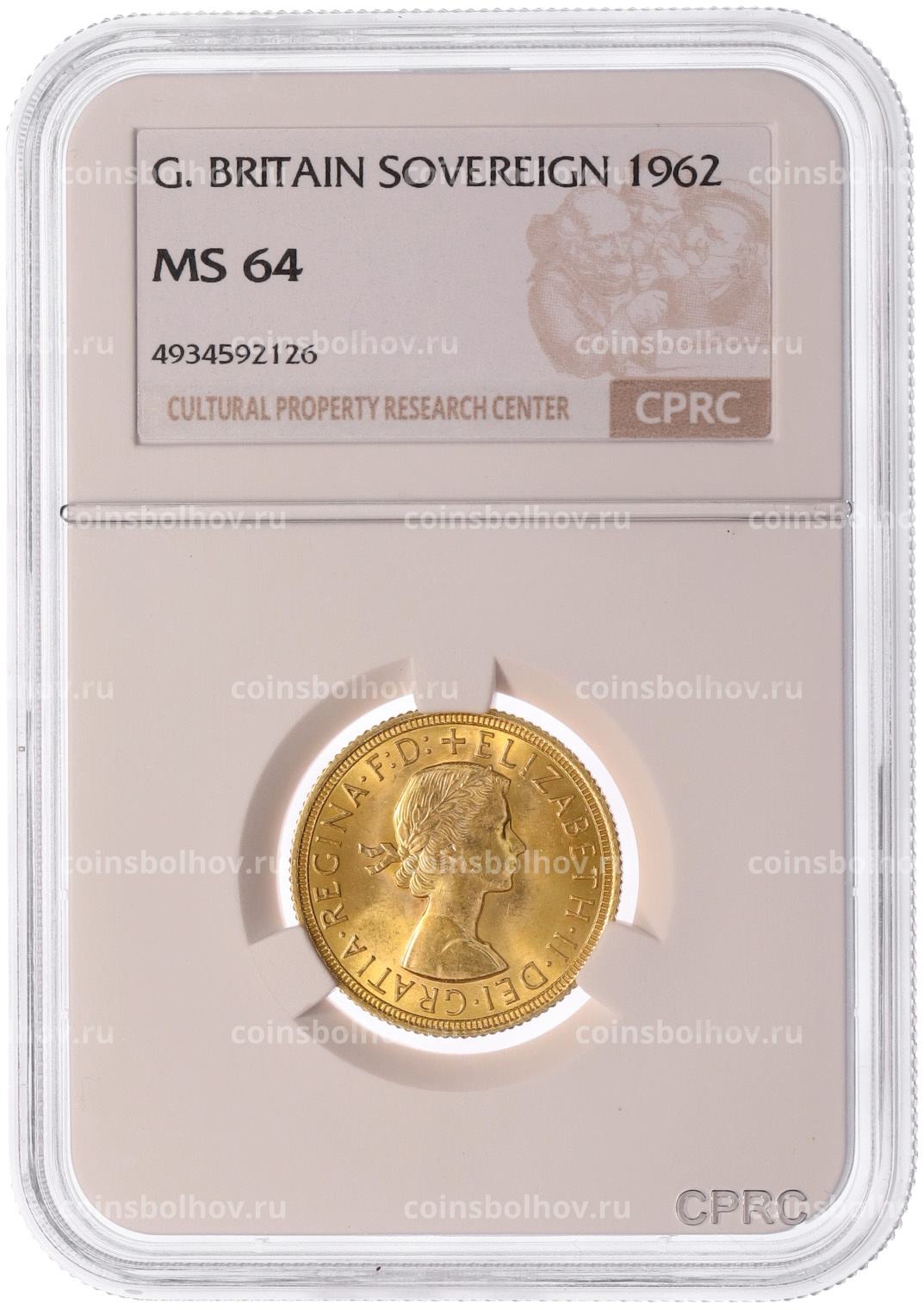 Монета 1 соверен 1962 года Великобритания — в слабе CPRC (MS64)