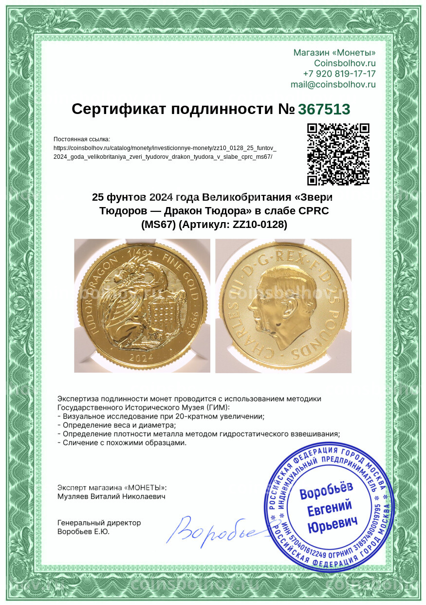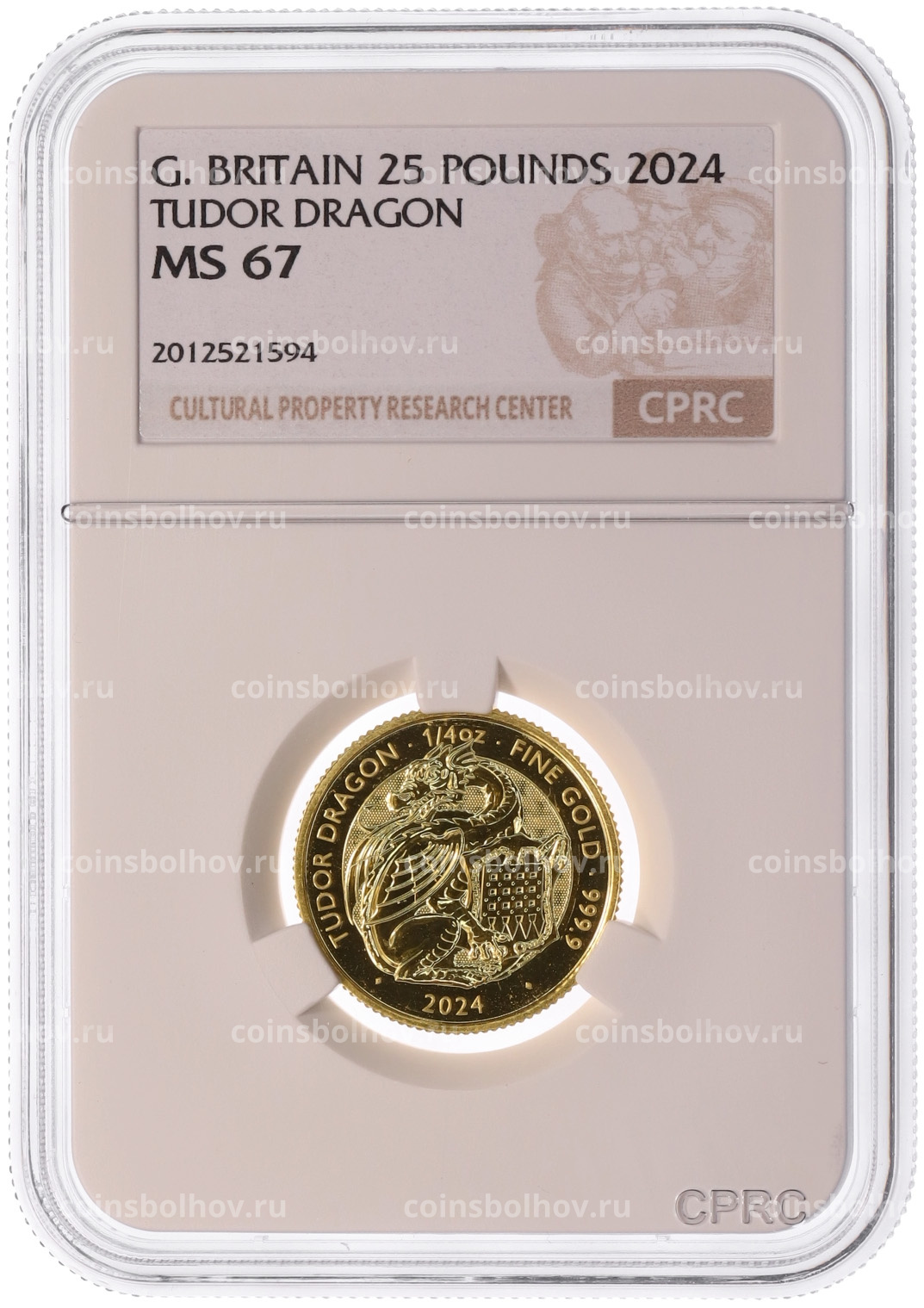 Монета 25 фунтов 2024 года Великобритания «Звери Тюдоров — Дракон Тюдора» в слабе CPRC (MS67)