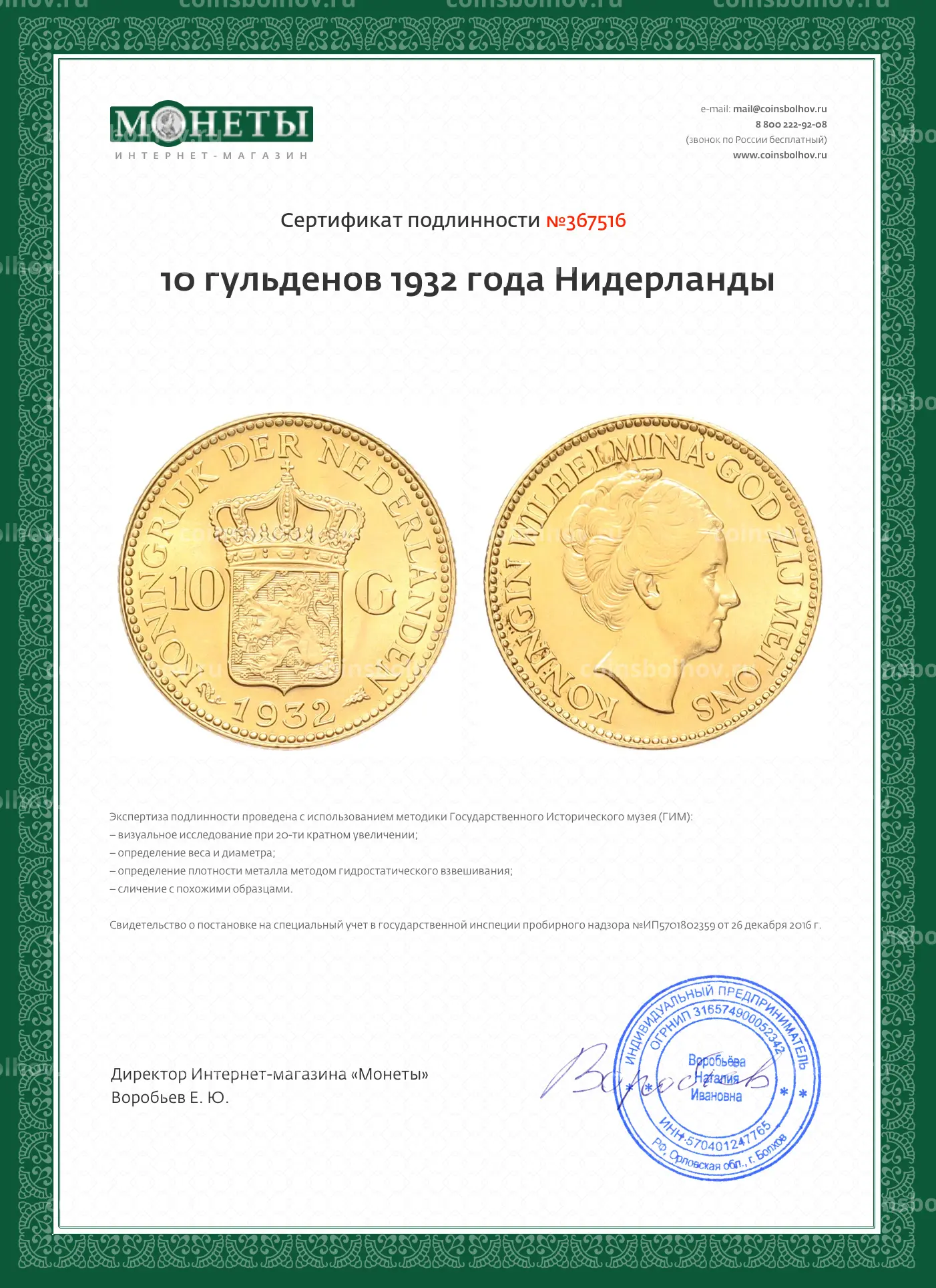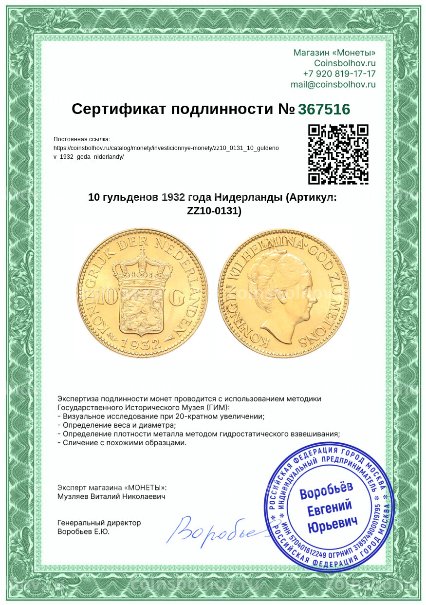 - Номинал 10 гульденов