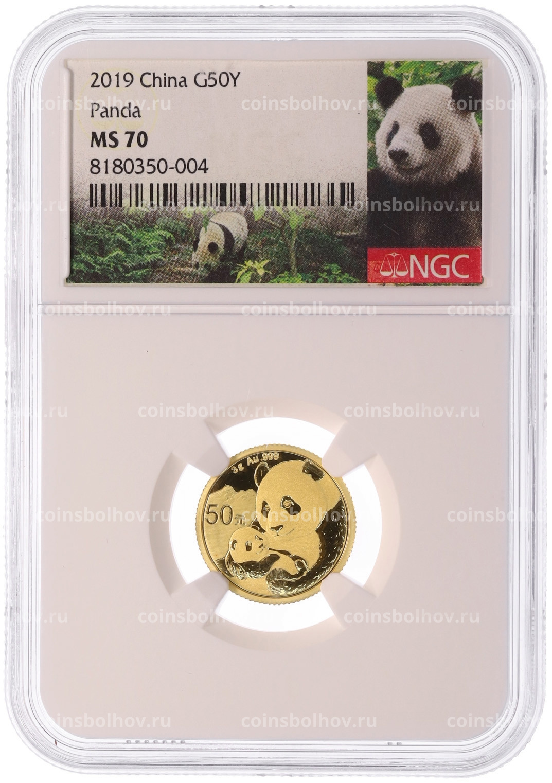 Монета 50 юаней 2019 года Китай «Панда» в слабе NGC (MS70)