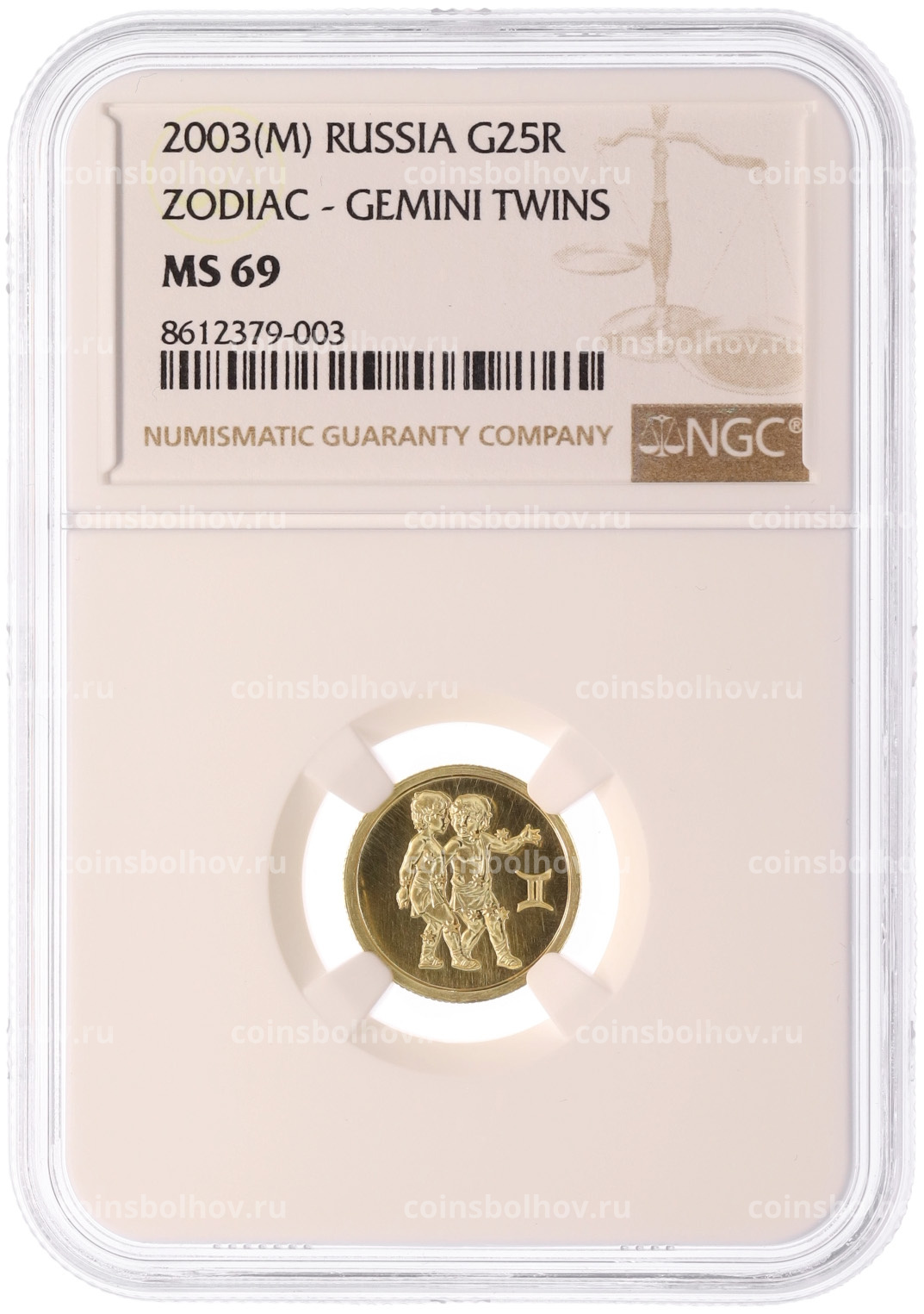 Монета 25 рублей 2003 года ММД «Знаки зодиака — Близнецы» в слабе NGC (MS69)