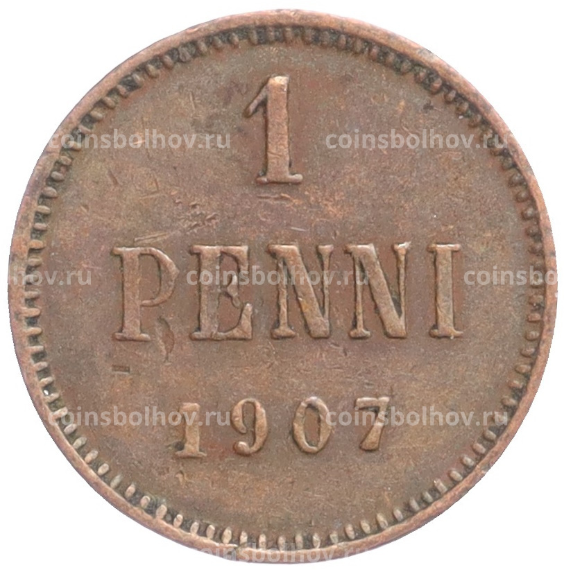 Монета 1 пенни 1907 года Русская Финляндия