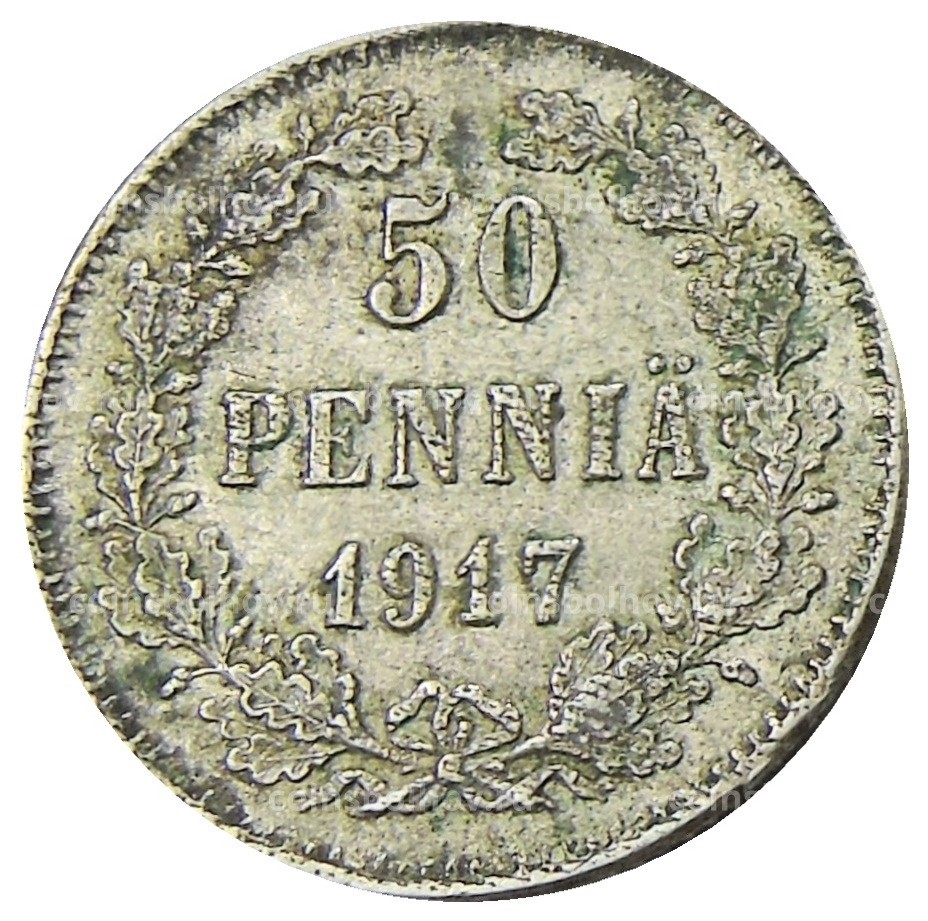 Монета 50 пенни 1917 года Русская Финляндия — Орел без корон (Временное правительство)