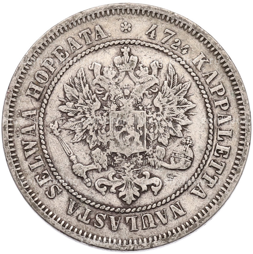 Монета 2 марки 1872 года Русская Финляндия