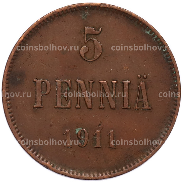 Монета 5 пенни 1911 года Русская Финляндия