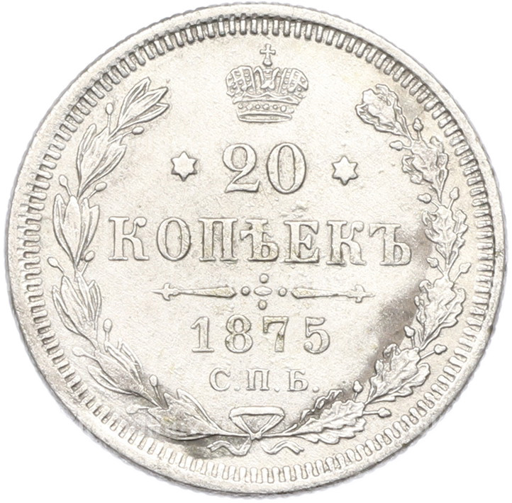 Монета 20 копеек 1875 года СПБ НI