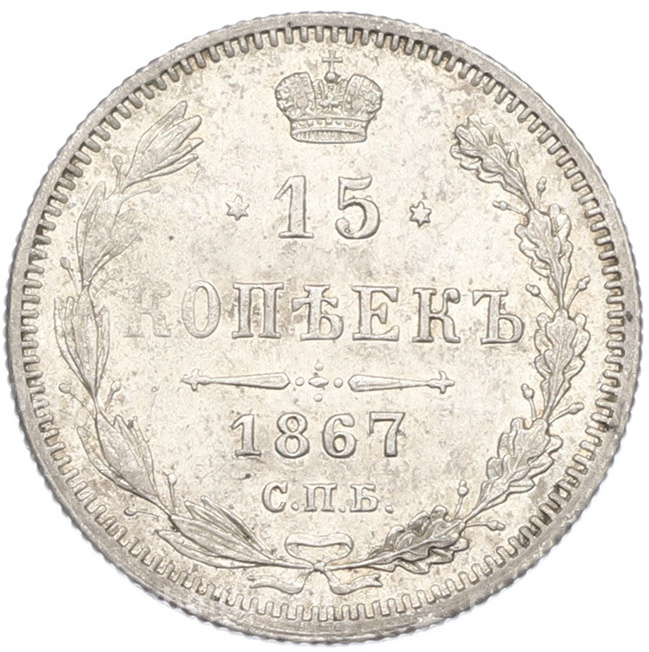 Монета 15 копеек 1867 года СПБ НI