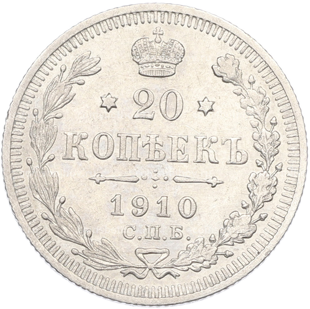 Монета 20 копеек 1910 года СПБ ЭБ