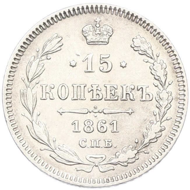 Монета 15 копеек 1861 года СПБ