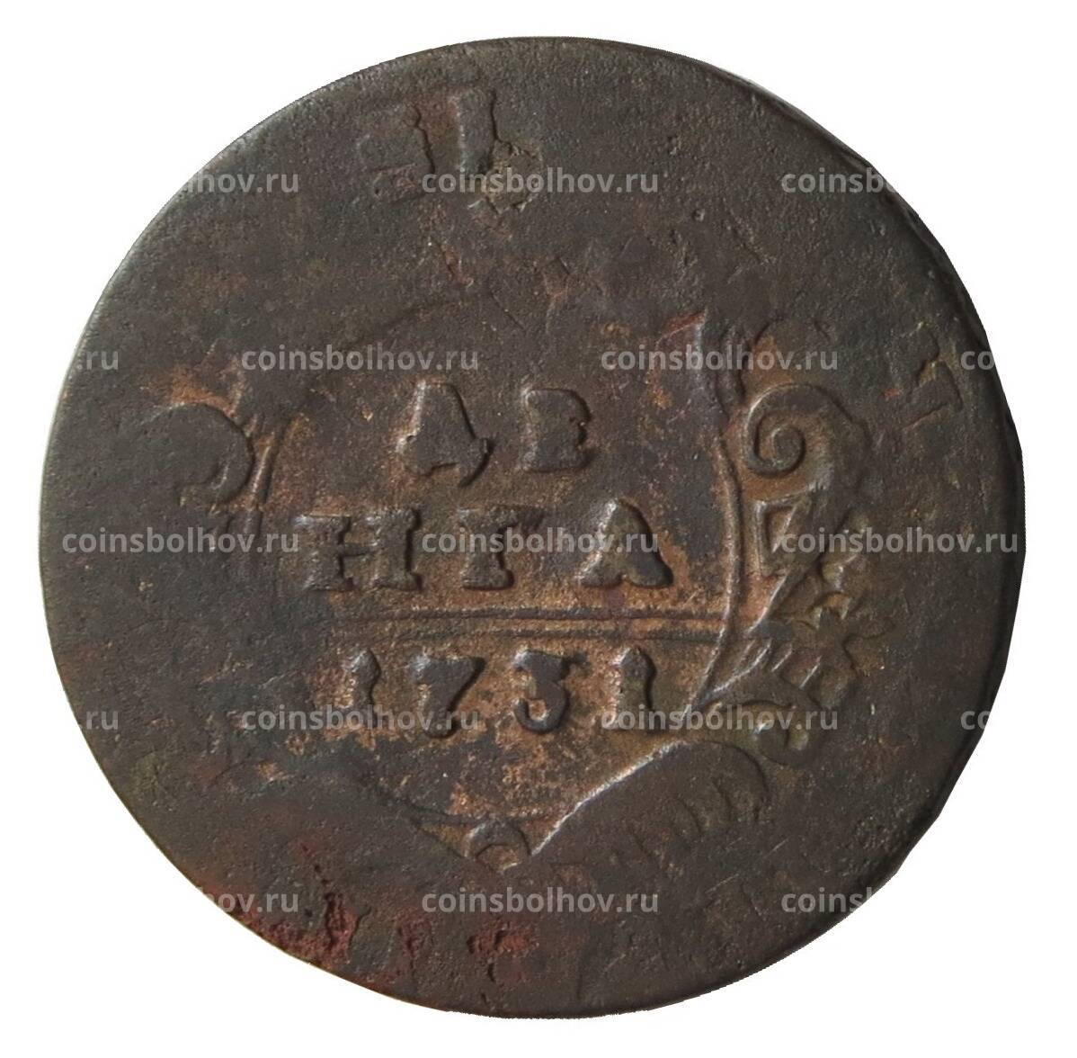 Денга 1731 года Перечекан из 1 копейки Петра I