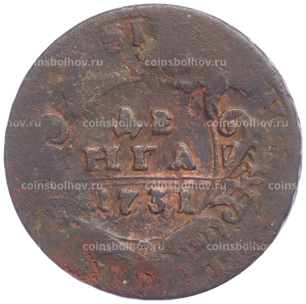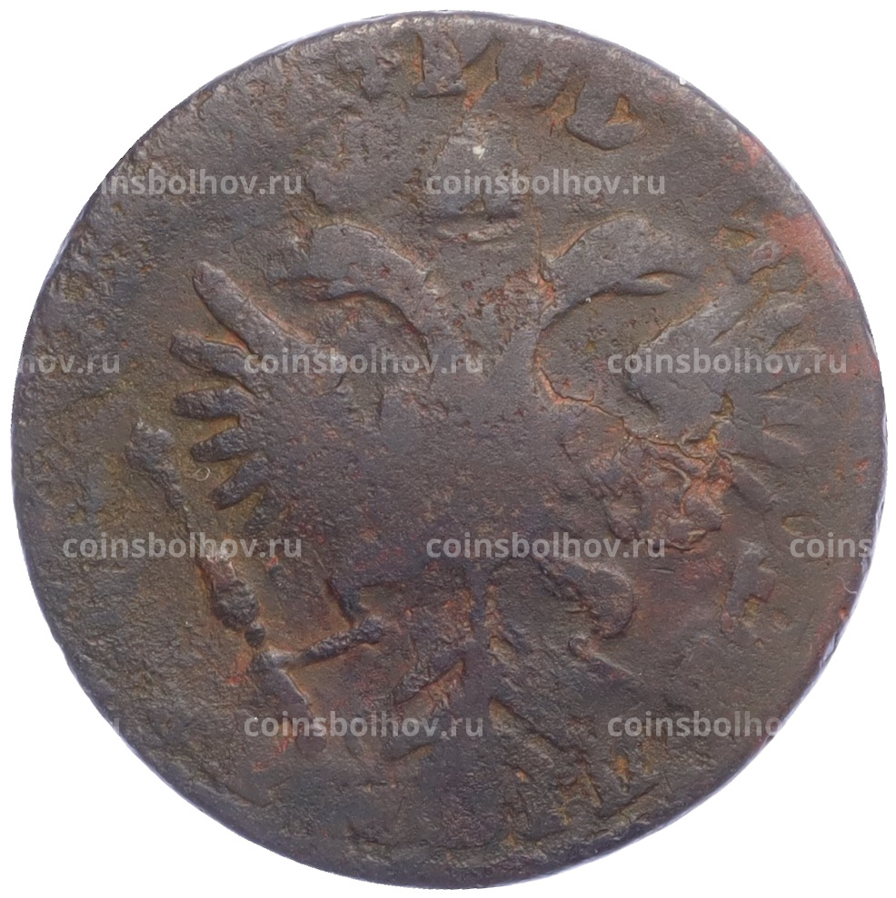 Монета Денга 1731 года Перечекан из 1 копейки Петра I